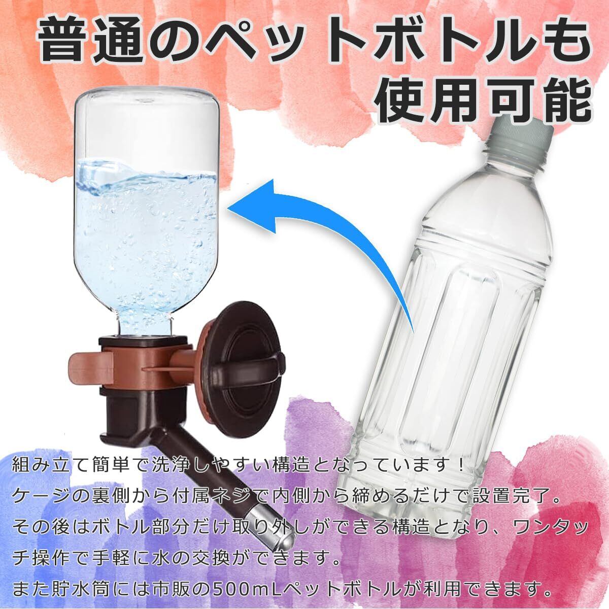 軽量 自動給水 ペットボトル 水漏れ軽減機能付 ゲージ かんたん取付 清潔 ペット用品 犬猫 ウォーターノズル 小動物にも対応