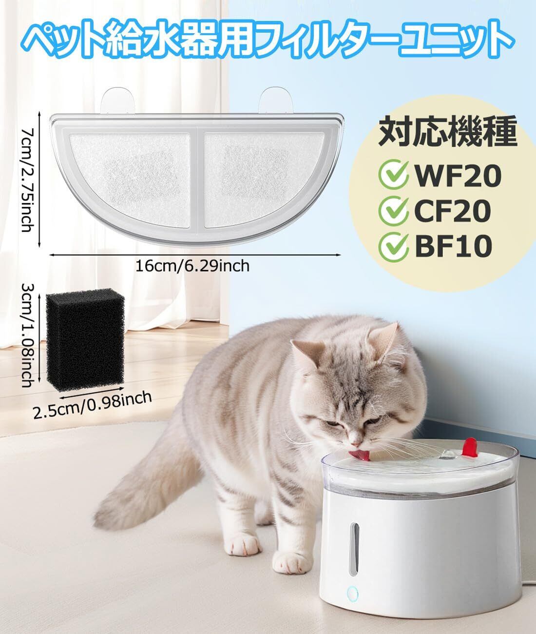 【獣医師監修】 ペット 猫 水フィルター 給水器フィルター WF20 CF20 交換水フィルター 猫&犬兼用 自動給水器 水飲み器 フィルターユニット 枠付き 9セット入り