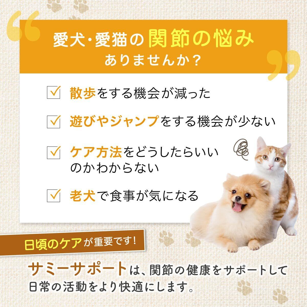 【製薬会社監修】 ペット サプリメント 脚・ 関節 (犬 猫) サミーサポート 国産品質 天然由来 味付け無し 小粒タイプ/30粒入