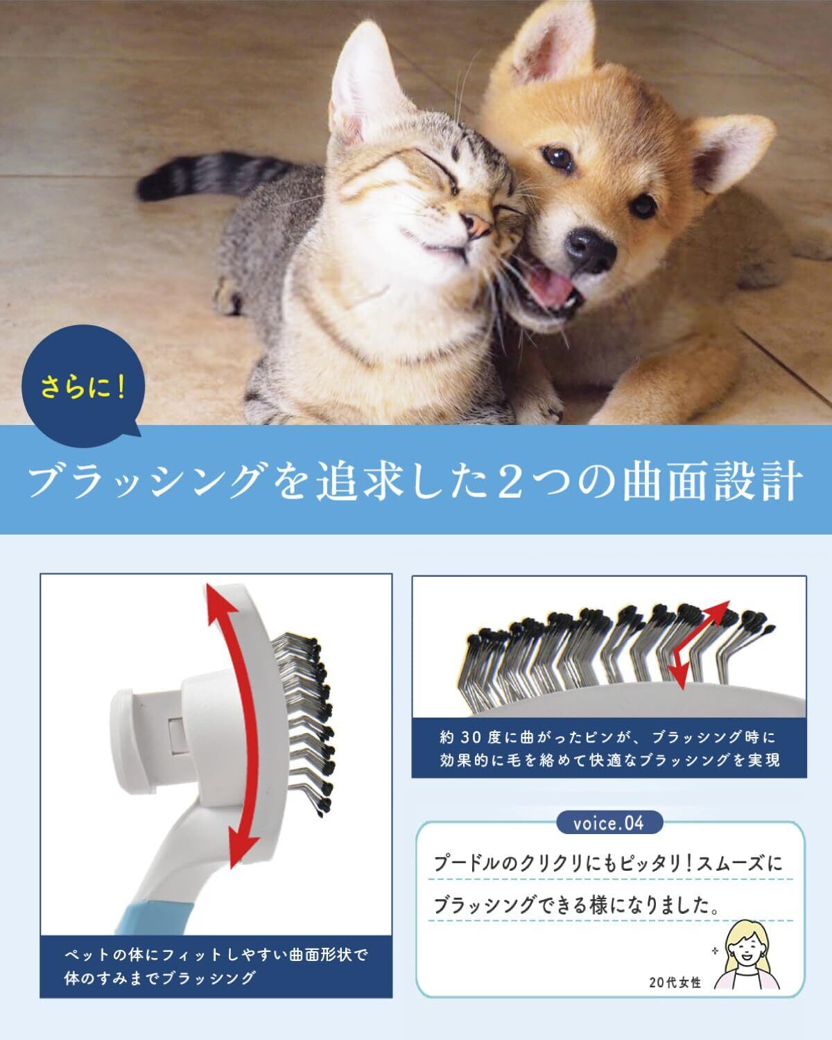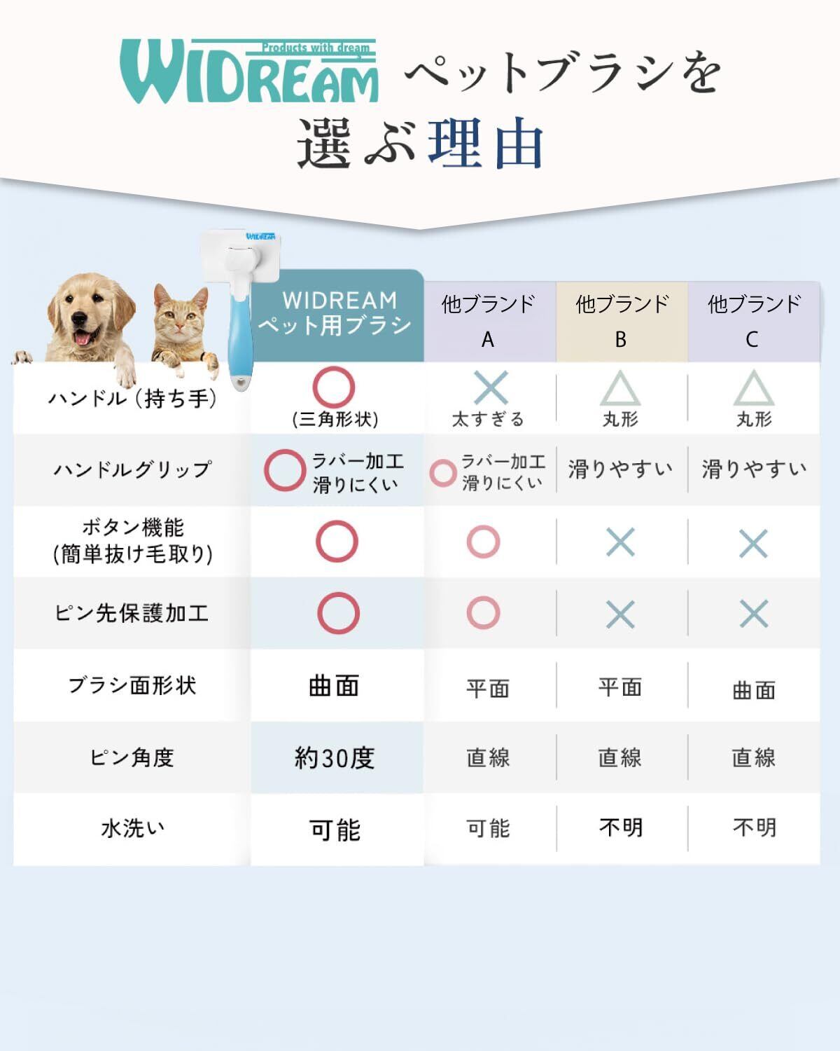 【トリマー監修】WIDREAM【抜け毛が簡単に取れるボタン式&先端保護加工でペットに優しい】ペット用ブラシ 猫ブラシ 犬ブラシ スリッカーブラシ