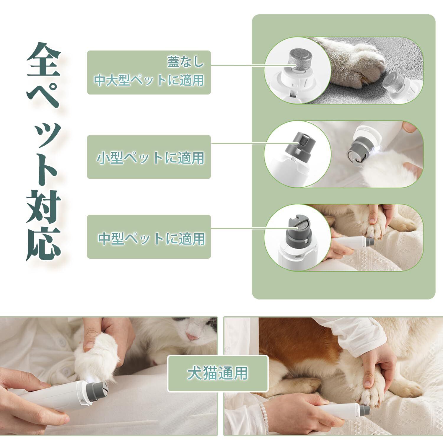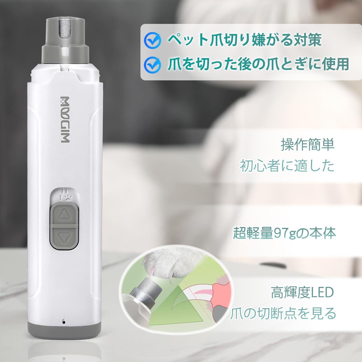 MUGIM ペット用電動爪やすり LEDライト付き 犬猫兼用 爪の血管を照ら 2段階の速度調節 小動物用爪研ぎ器 爪切り 爪とぎ 爪削り 爪鑢 USB充電式 予備の研ぎヘッド付き