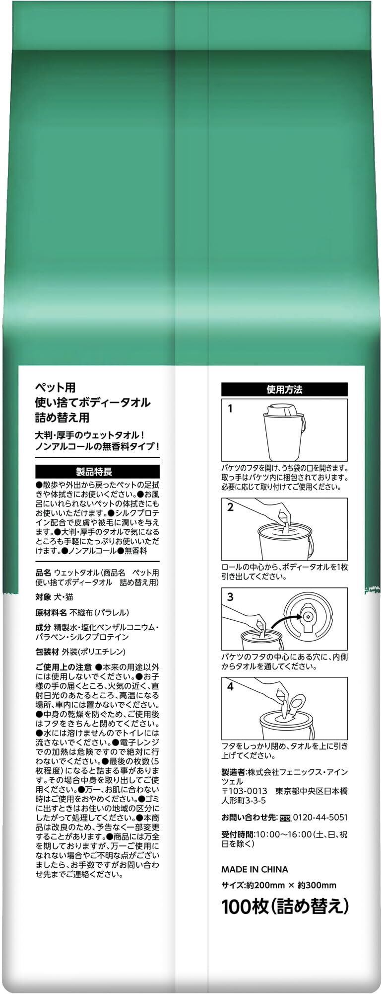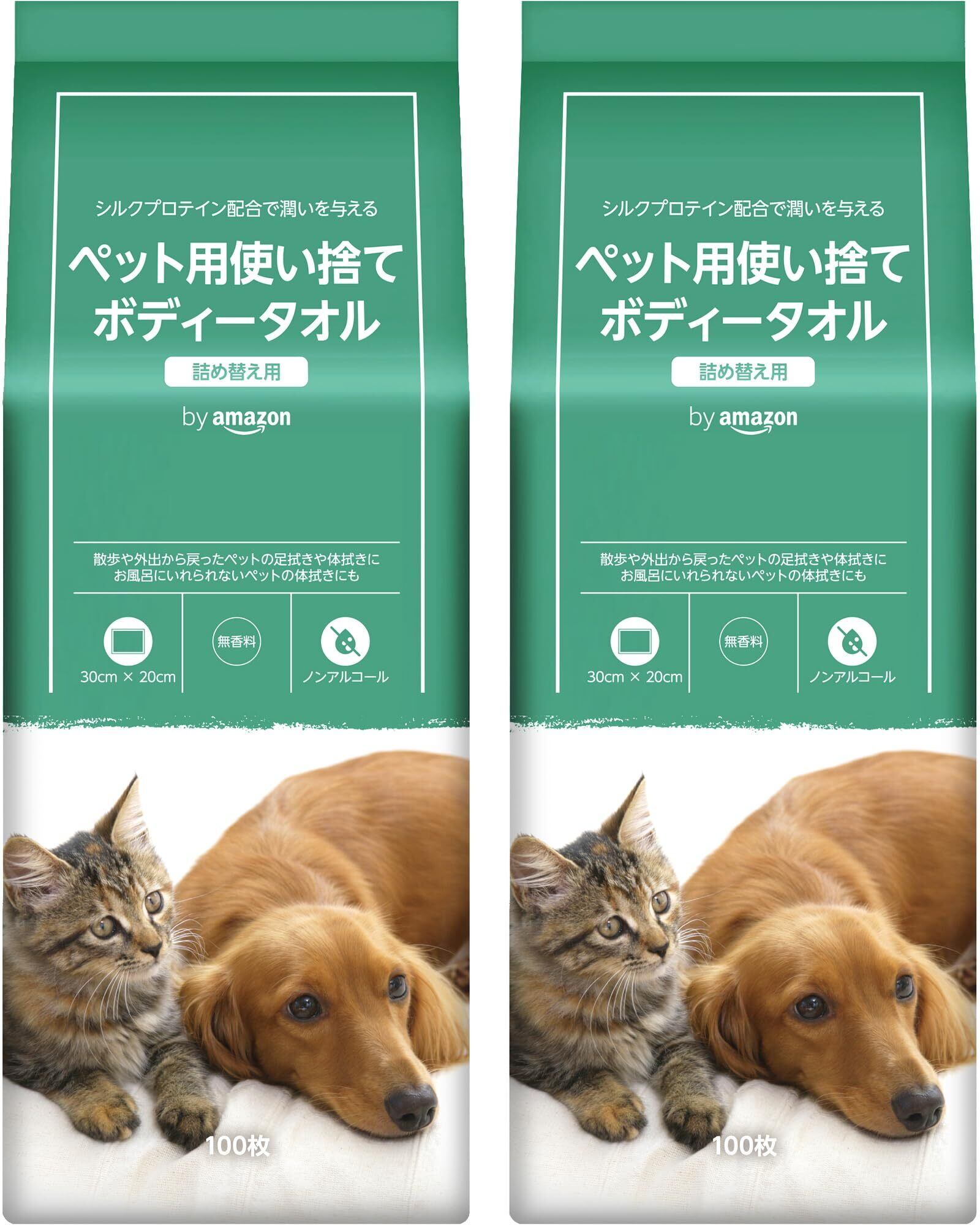 by ペット用 使い捨てボディータオル シルクプロテイン配合 無香料 (詰め替え用 100枚×2個セット)
