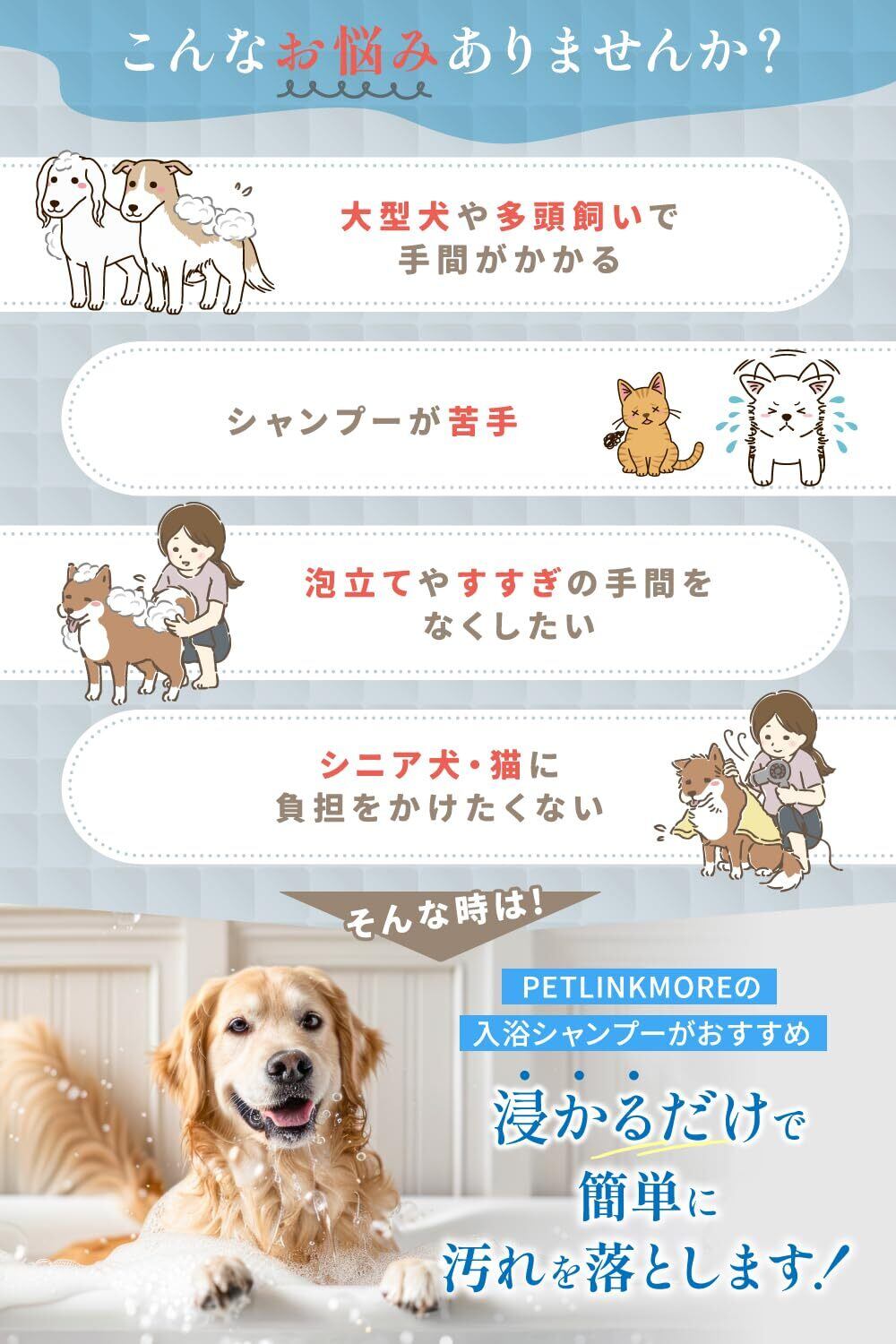 【つかるだけの簡単シャンプー】PETLINKMORE 入浴シャンプー 490ml 犬 猫 ペット 入浴剤 お風呂 洗浄 保湿 低刺激 国産 獣医師監修 (単品)