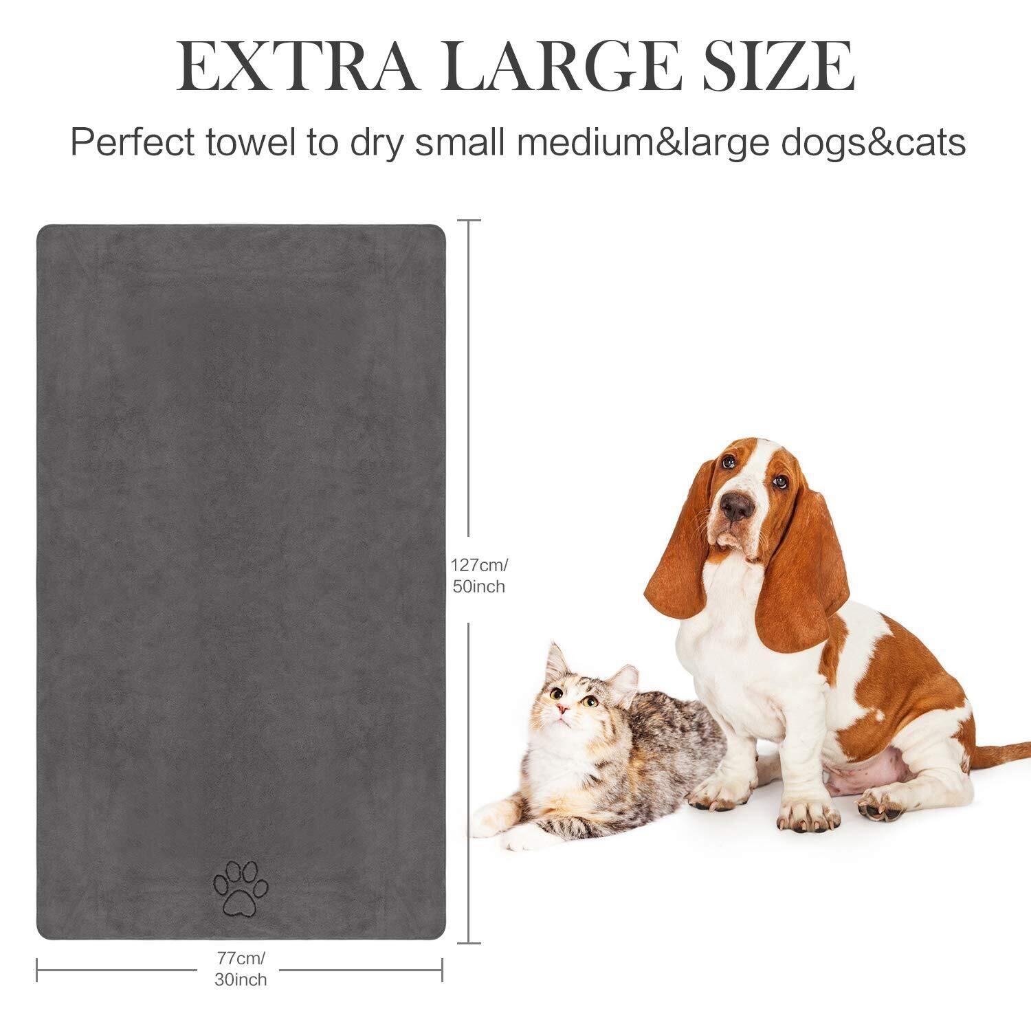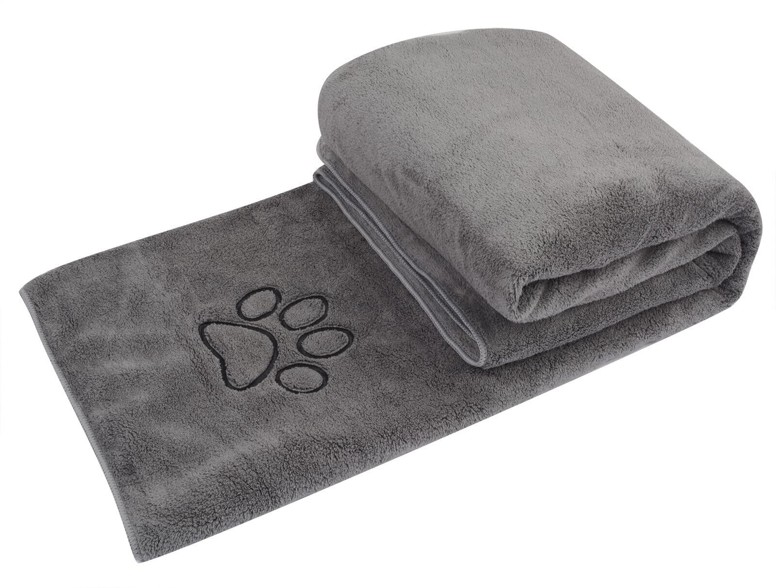 Sunland ペット用 タオル 超吸水 厚手 超ソフト マイクロ ファイバー 犬 猫 体拭き 77cmx127cm ダークグレー