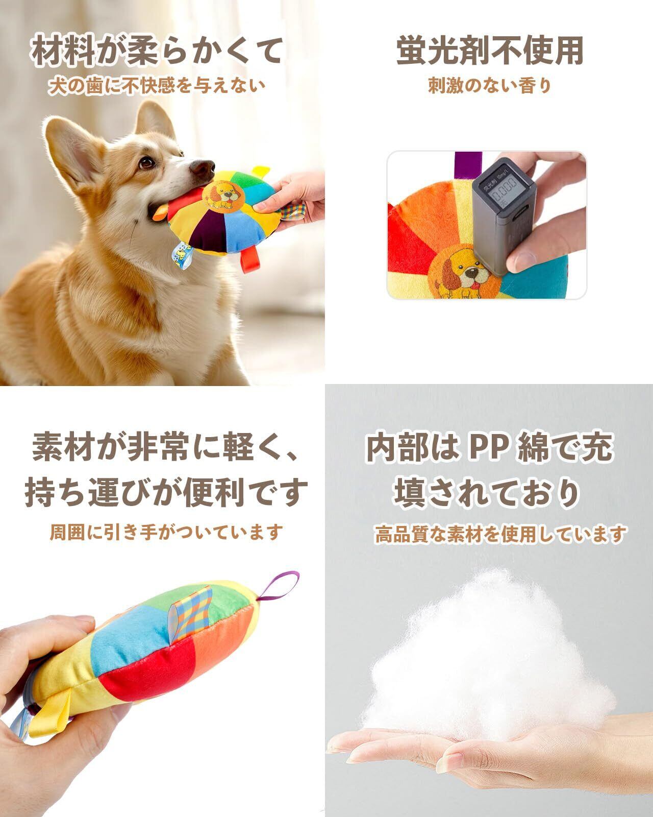 犬 フリスビー 犬 おもちゃ ペット用品 柔らかいぬいぐるみ生地 運動不足解消 知能訓練 カラフルな噛みおもちゃ 小型犬/中型犬/大型犬に適応
