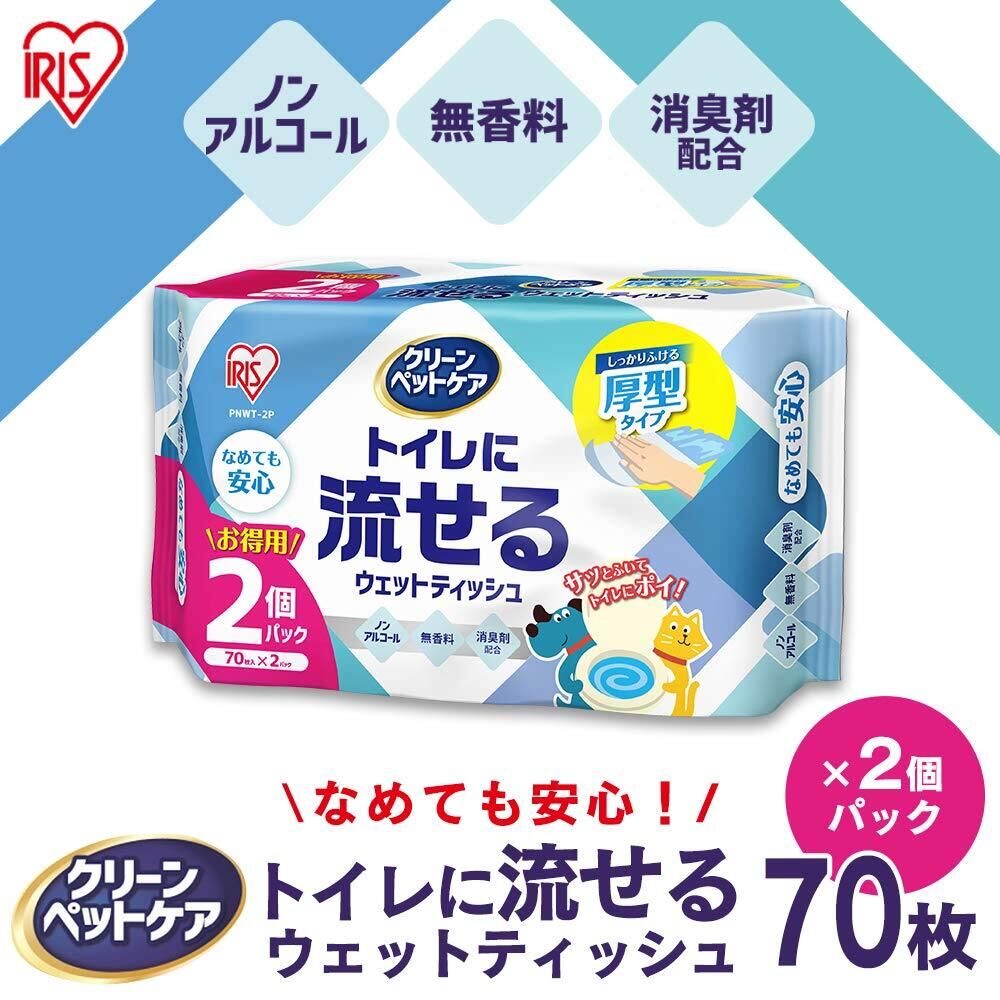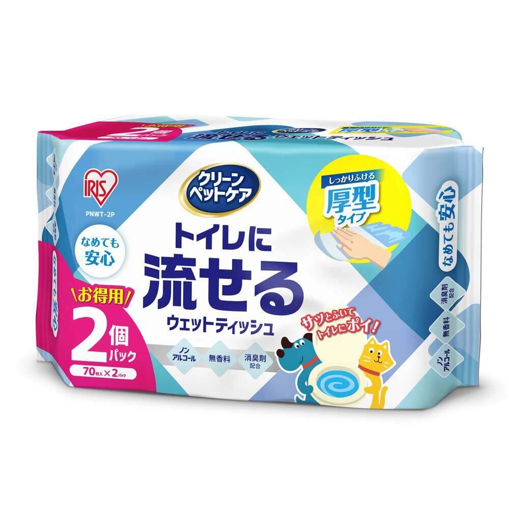 アイリスオーヤマ ペット ウェットティッシュ トイレに流せる 厚型タイプ 除菌 ノンアルコール 消臭剤配合 日本製 70枚×2袋 140枚入