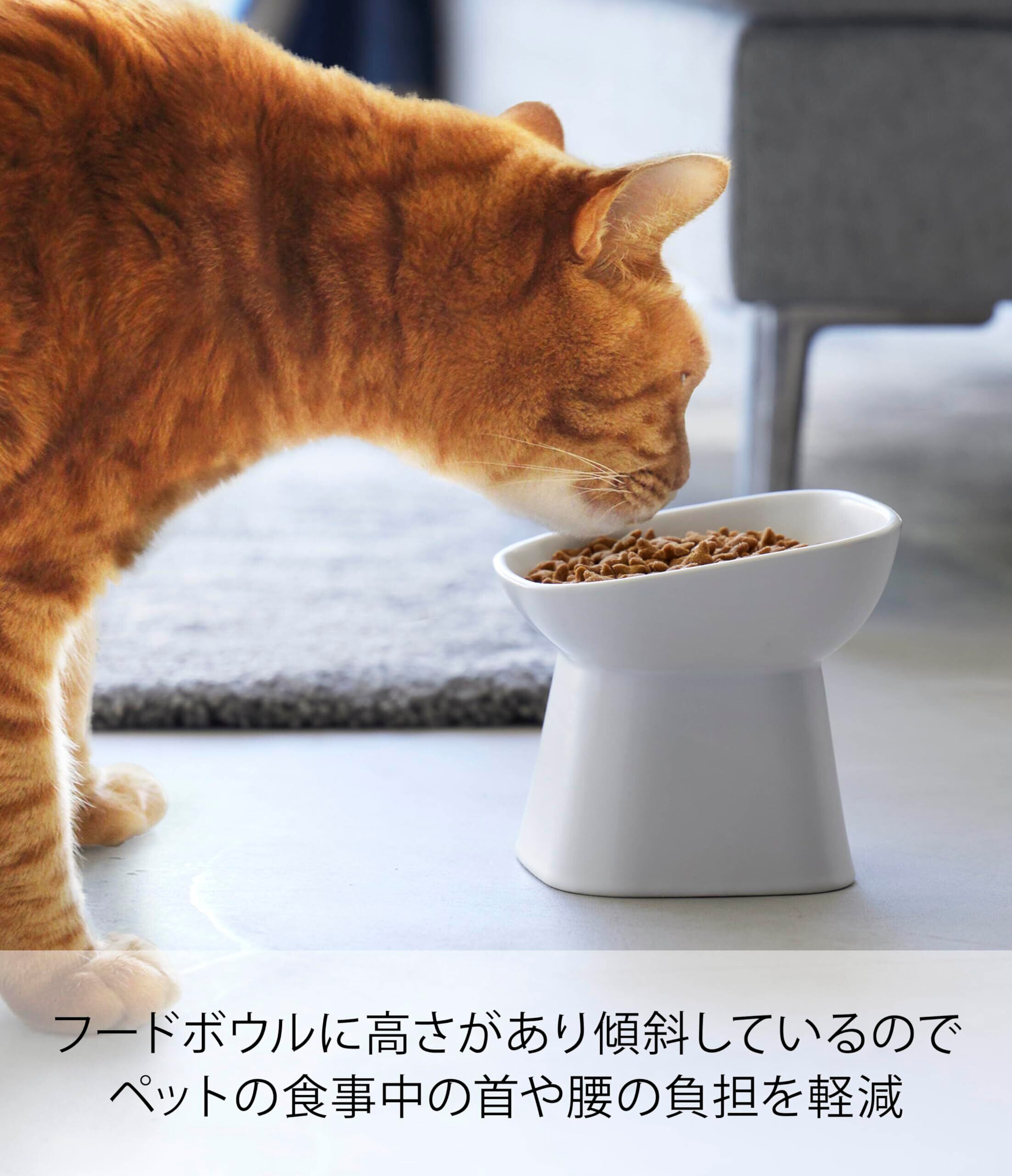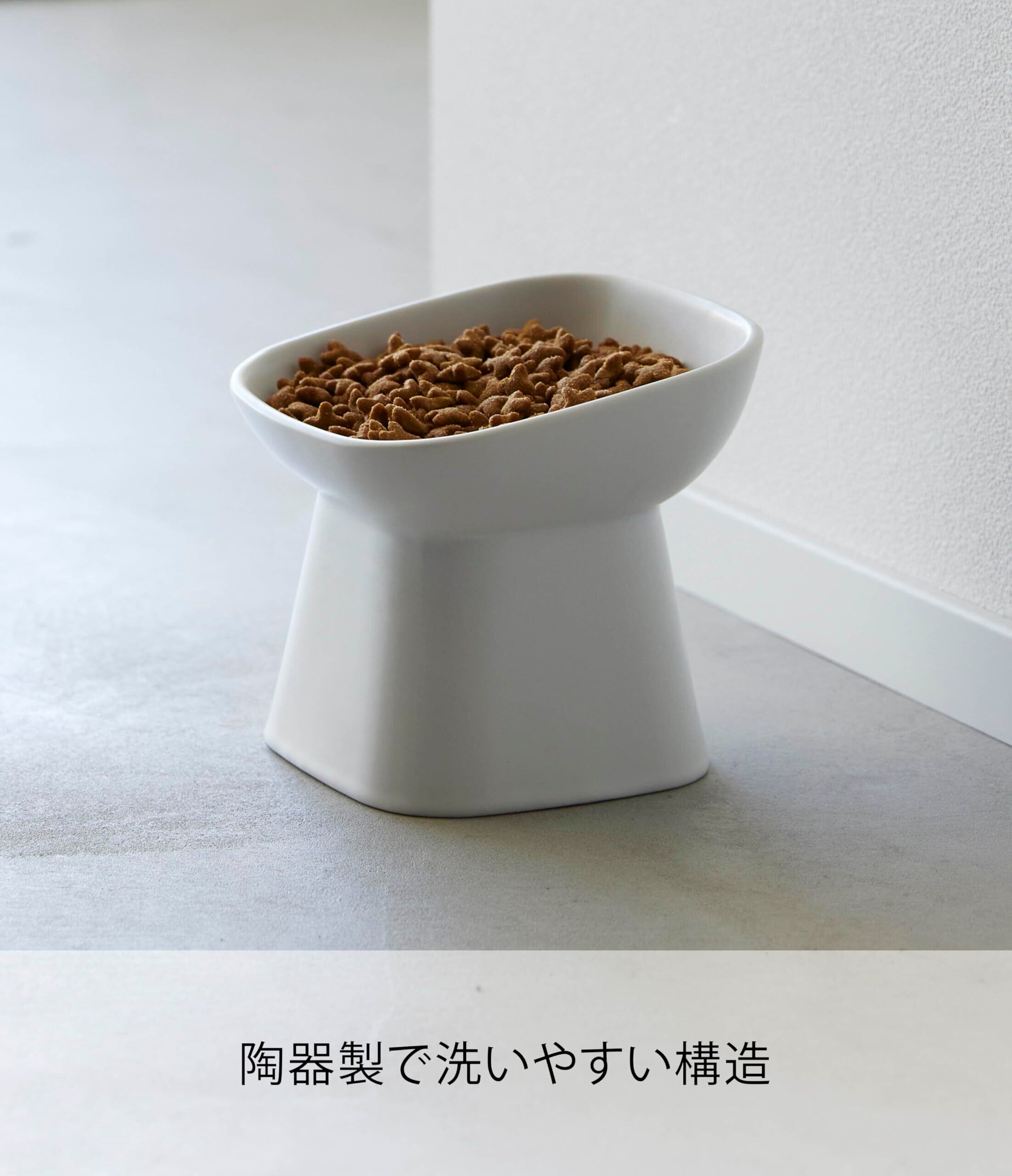 山崎実業(Yamazaki) 食べやすい高さ 陶器 ペットフードボウル 斜めトール ホワイト 約W12×D12×H11.5cm タワー tower エサ入れ 水入れ 食洗機対応 電子レンジ対応 1781 | kki