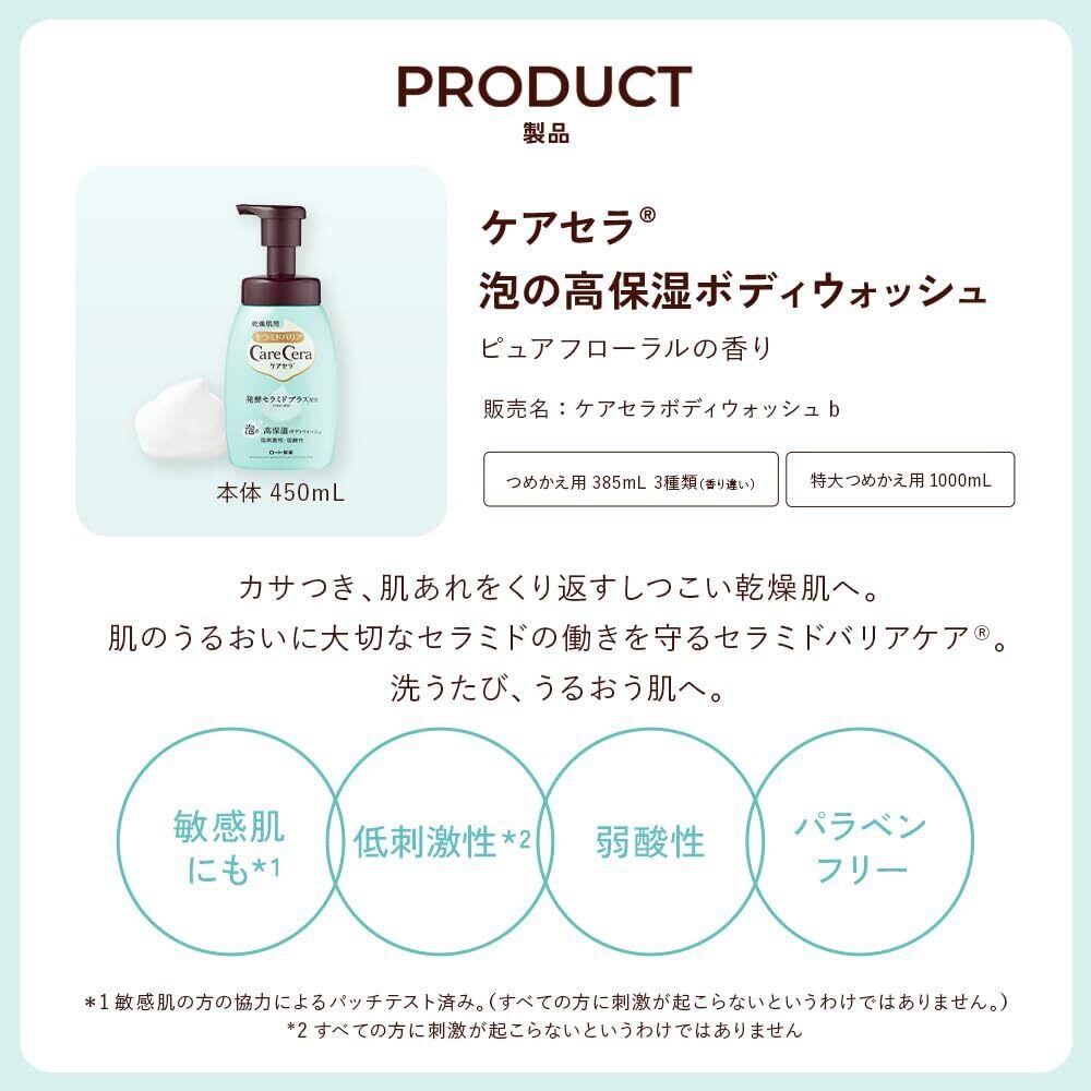 ケアセラ(CareCera) 泡の高保湿ボディウォッシュ ボディソープ 【1】ピュアフローラル 450ミリリットル (x 1)