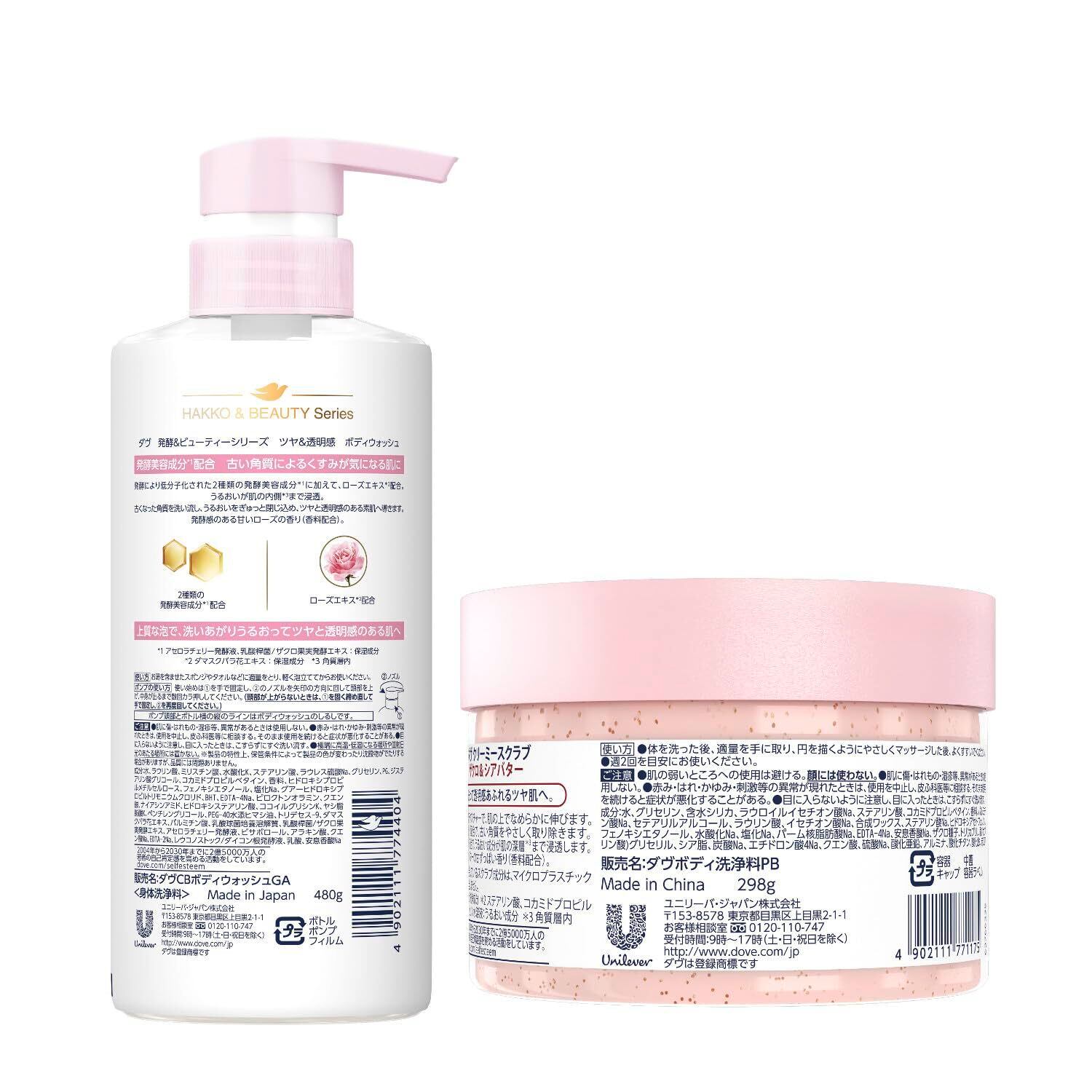 Dove 【セット買い】角質ケアセット (ダヴ) ザクロ&シアバター クリーミースクラブ ボディ 本体 298g+(ダヴ)ボディソープ 発酵&ビューティーシリーズ ツヤ&透明感 (ボディウォッシュ) ポンプ 480g | kki