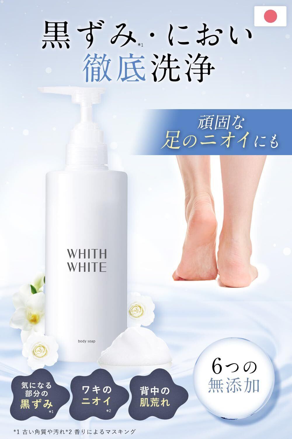 【素肌が香る香水ソープ】WHITH WHITE(フィス ホワイト) ボディソープ フットソープ [ サボンの香り ] 高保湿 ニオイ対策 足 背中 肌荒れ 透明肌 無添加 450ml