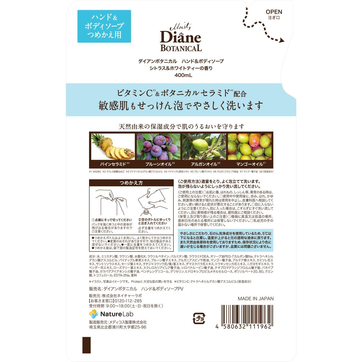 ダイアン ボタニカル Diane BOTANICAL ハンド&ボディソープ [シトラス&ホワイトティーの香り] 詰め替え 400ml【VC×ボタニカルセラミド(保湿)】ビタミンC ボディーソープ | kki