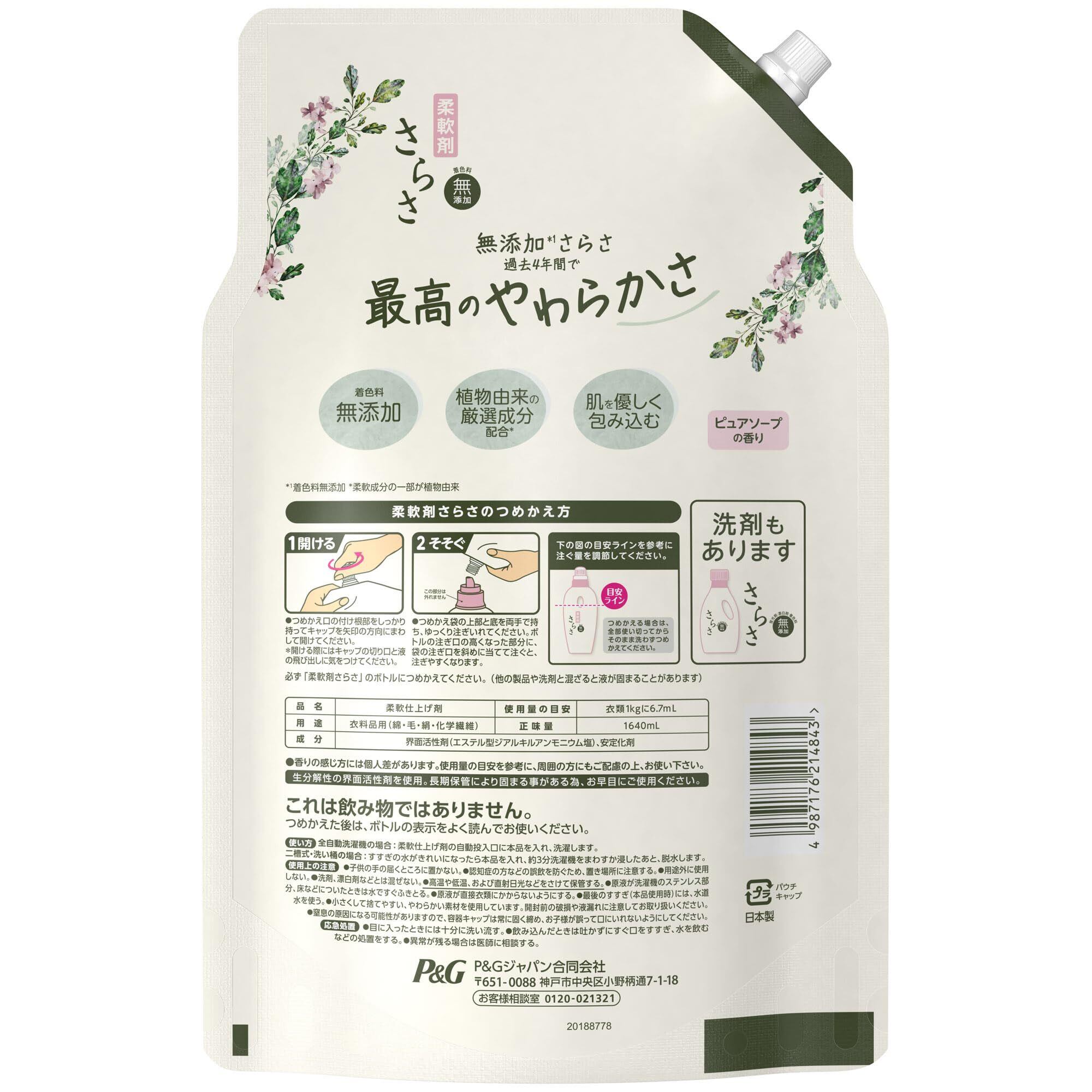 さらさ 柔軟剤 無添加 ピュアソープの香り 植物由来の厳選成分配合 [大容量] 詰め替え 1,640mL