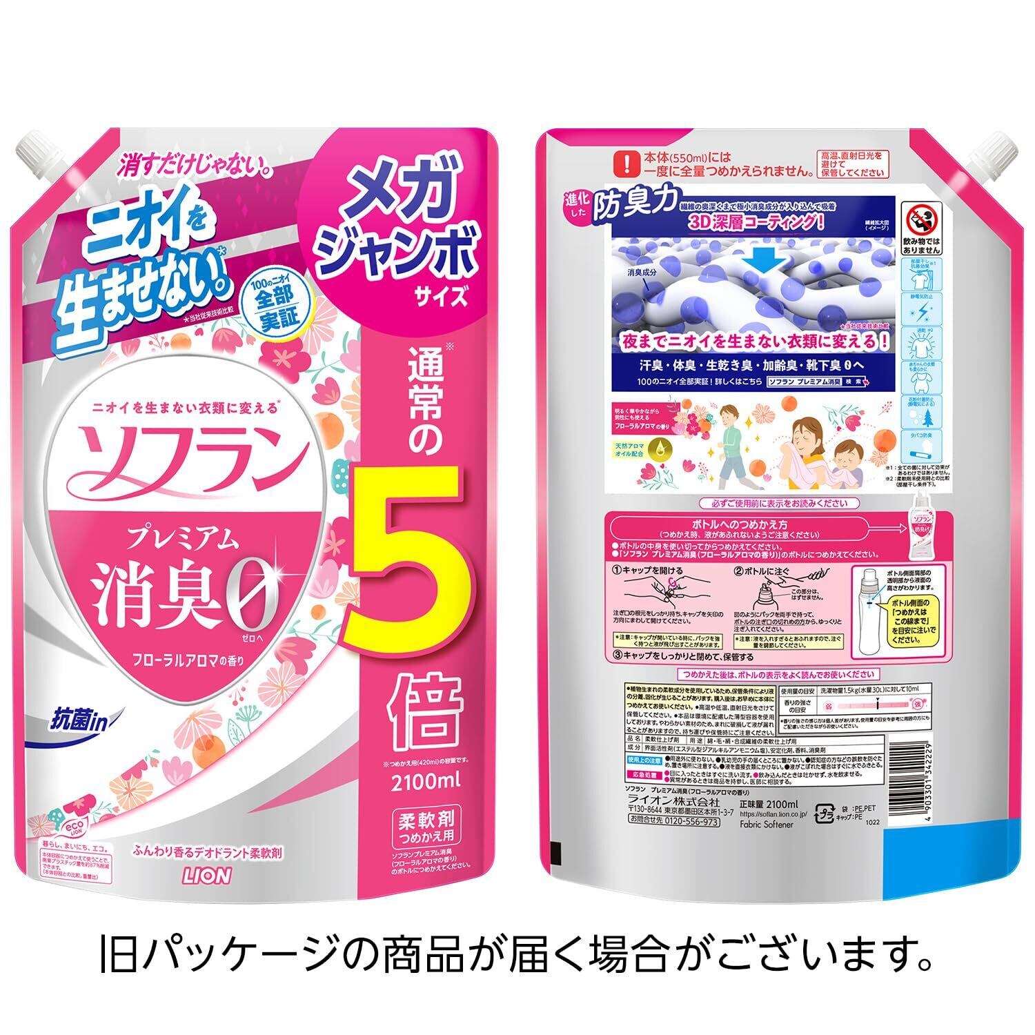 ソフラン プレミアム消臭 詰替メガジャンボ2100ml フローラルアロマ 生乾きでも菌を生ませずニオわせない 柔軟剤 抗菌 部屋干し 汗臭 体臭 加齢臭 靴下臭