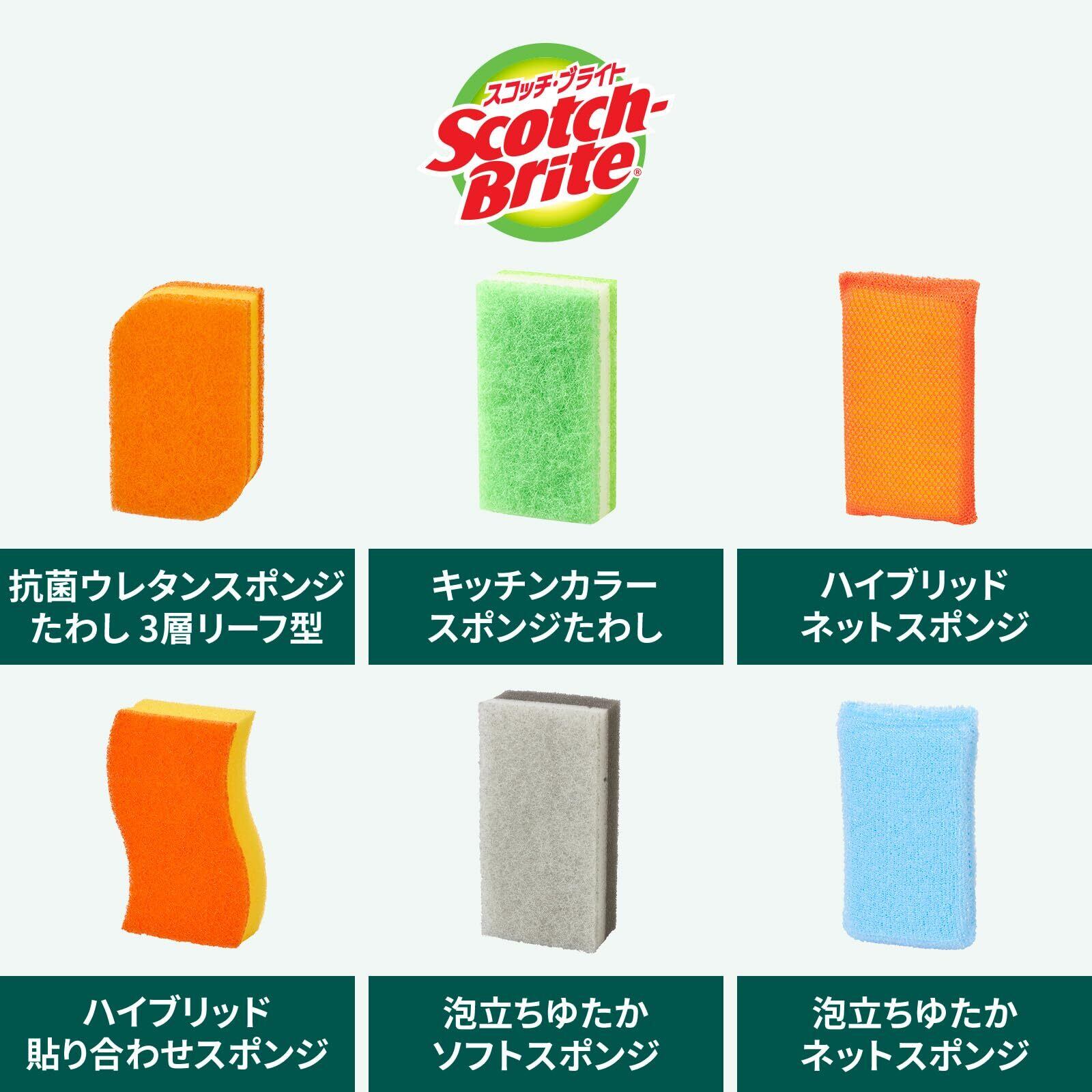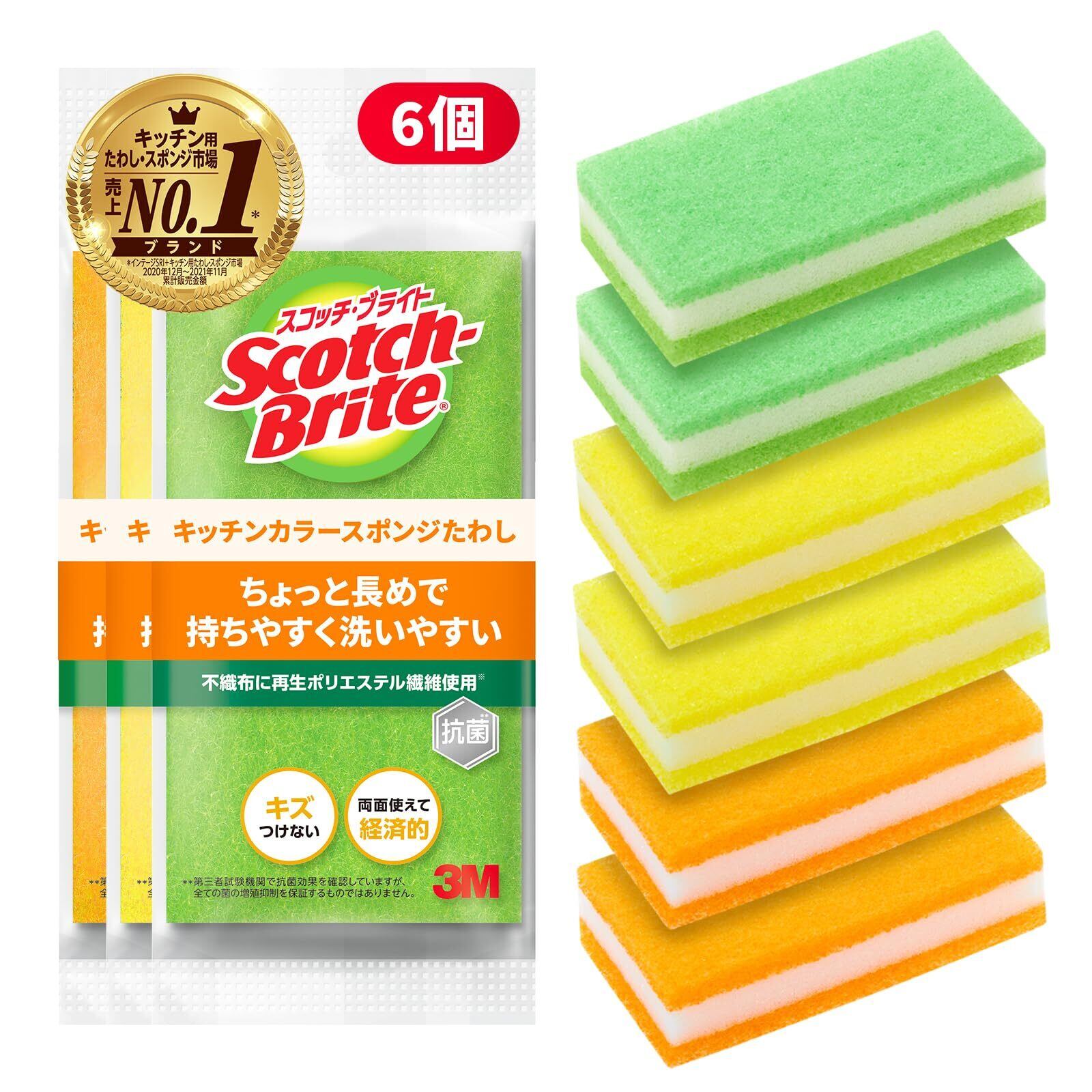 3M スコッチブライト キッチン カラー スポンジ 食器洗い キッチンスポンジ 食器用スポンジ 台所 ロング 6個