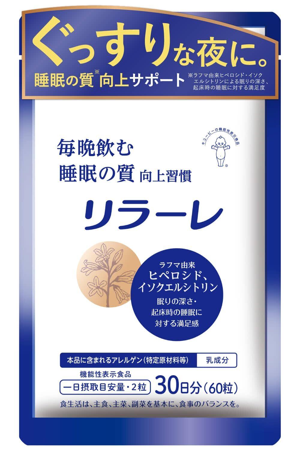 キユーピー リラーレ 睡眠 サプリ 60粒 約30日分 機能性表示食品 ラフマ配合 [ グリシン GABA テアニン 不使用] 睡眠 の 質を高める (30日用)