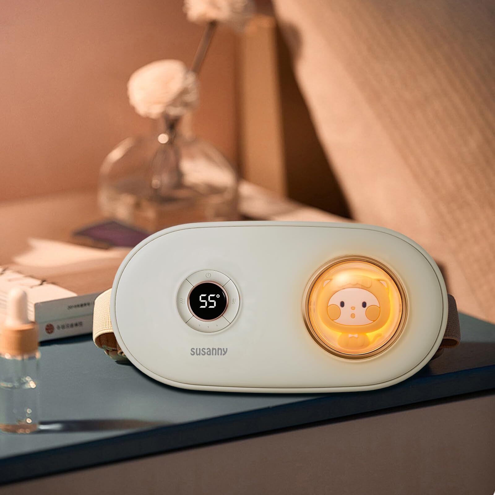 Susanny 腰サポーター ホットベルト 温熱ベルト 暖房用品 子/宮ホットベルト 可愛い猫ちゃん USB充電式 コードレス 軽量 携帯便利 振動機能付き 敬老の日 ギフト 自宅家庭用 職場用 寒さ対策 (White) | kki
