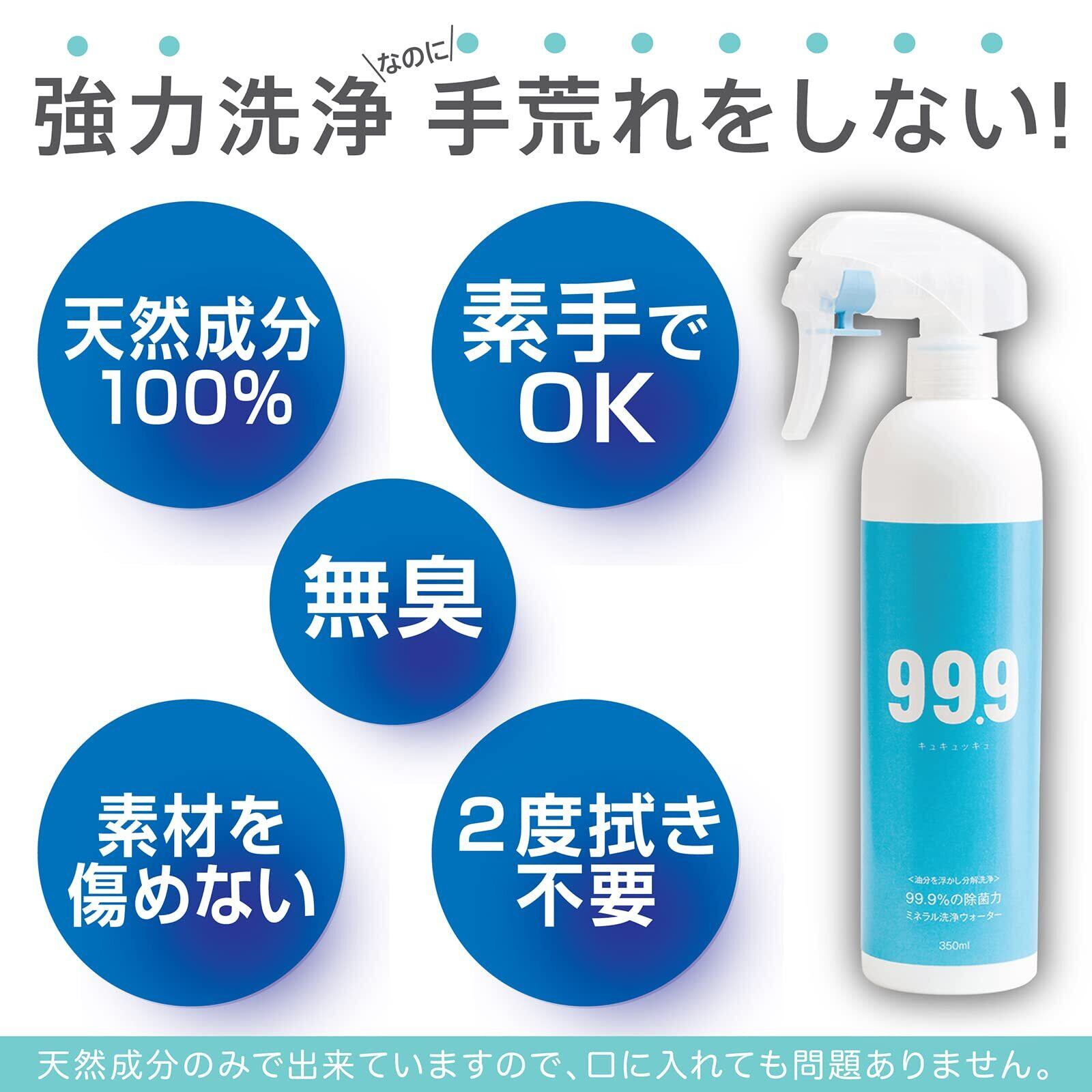 【有吉ゼミで紹介 毎日のちょっとしたお掃除のクリーナー】99.9洗浄スプレー 350ml×2本 この1本でキッチンから家中のお掃除できますしかも除菌にもなります。毎日のお掃除が苦にならない時短クリーナー 無添加 日本製 壁紙汚れ フローリング汚れ テーブルから冷蔵庫まで使用できるマルチクリーナー | kki