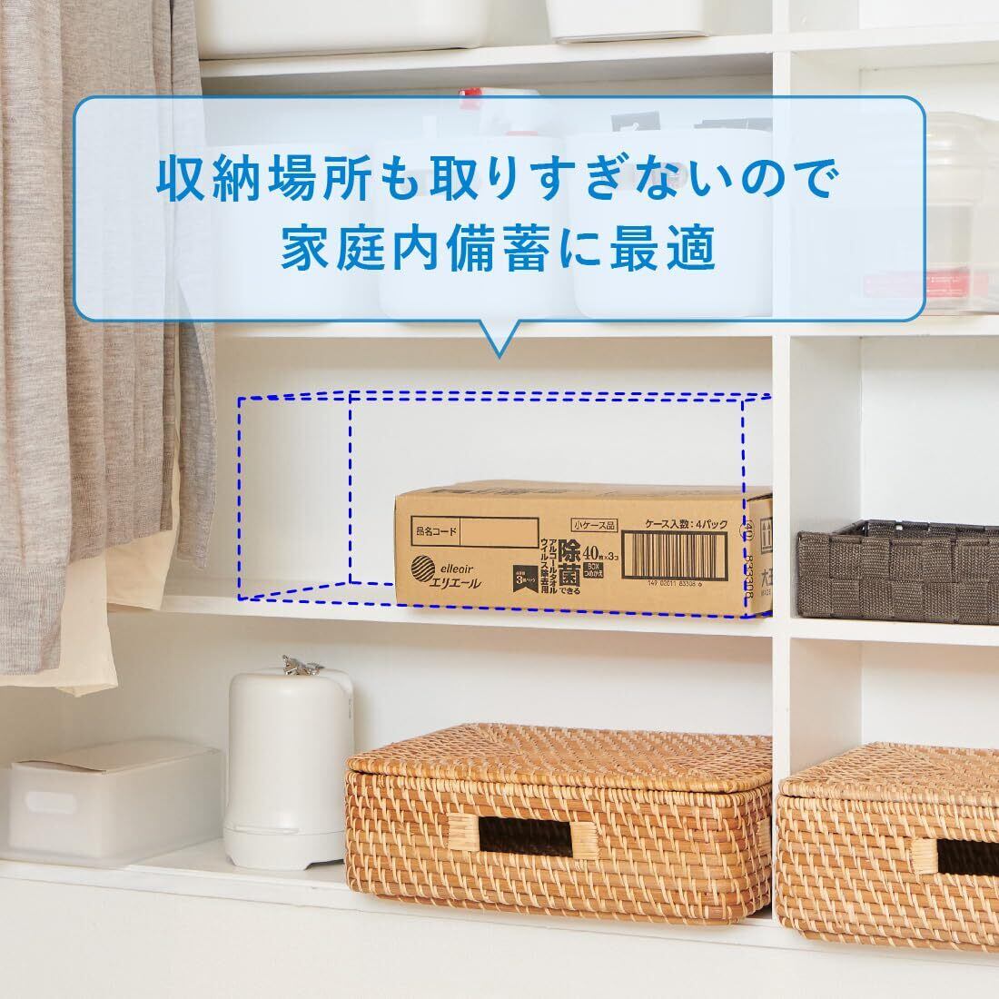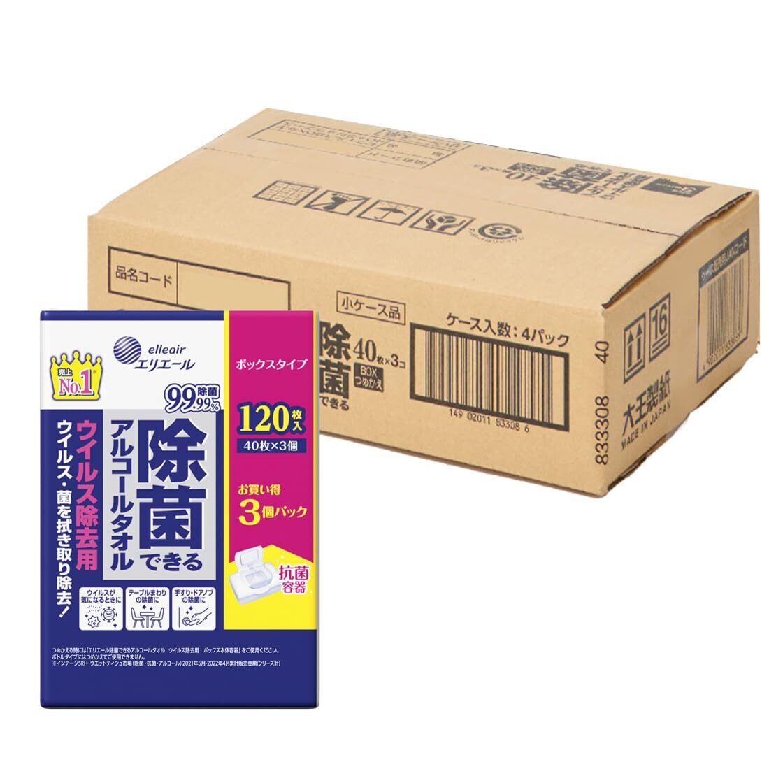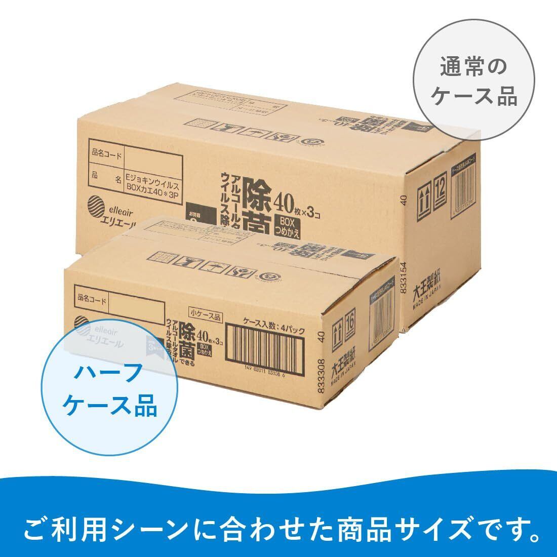エリエール 除菌できるアルコールタオル ウイルス除去用 ウェットティッシュ ボックス つめかえ 480枚(40枚×3パック×4セット) アルコールタイプ 【ハーフケース】 まとめ買い