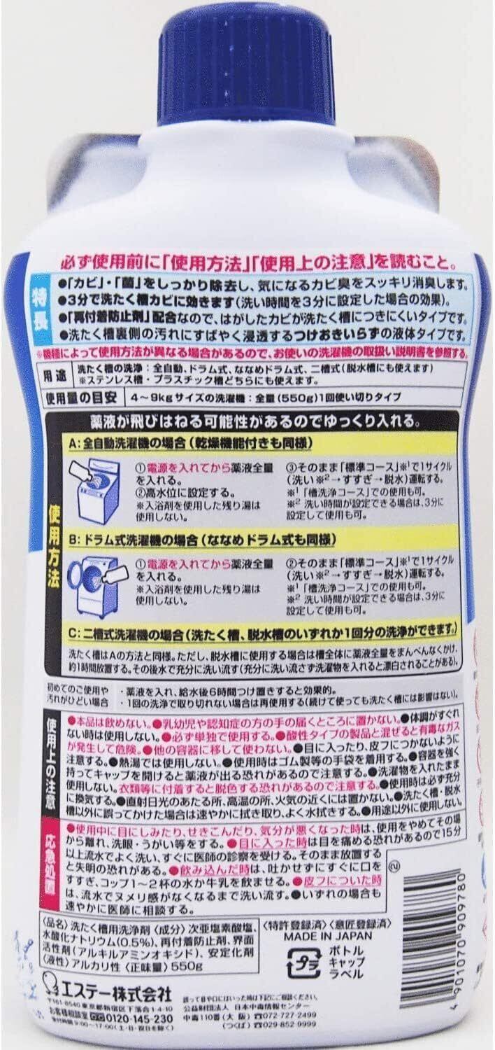 洗浄力 [ケース販売] 洗濯槽クリーナー 塩素系 液体タイプ 550g×12個 (ドラム式にもOK) 洗濯機 洗濯 洗たく槽 クリーナー