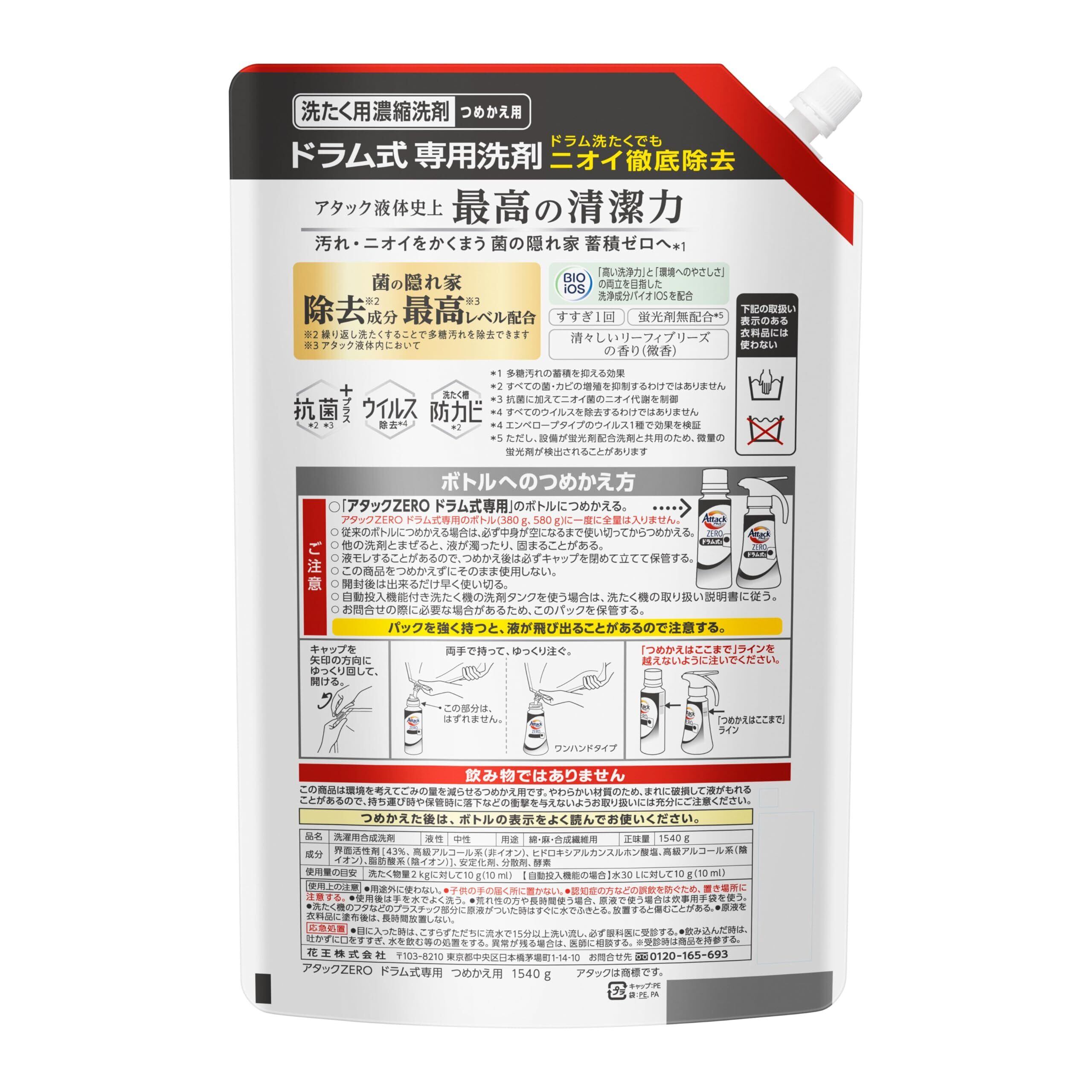 アタックZERO ドラム式専用 洗濯洗剤 液体 アタック液体史上 最高の清潔力。菌の隠れ家蓄積0へ 詰め替え 1540g