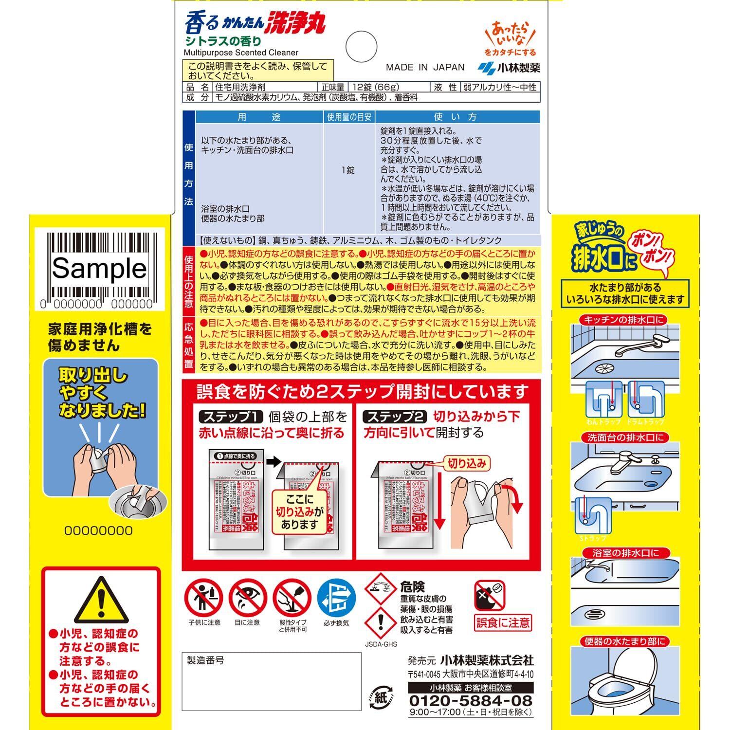 かんたん洗浄丸 香るシトラスの香り12錠入×4個(おまけ付き)【まとめ買い】排水口 洗浄 ニオイ ぬめり取り パイプ洗浄剤 シンク・洗面台・お風呂の排水口洗浄に