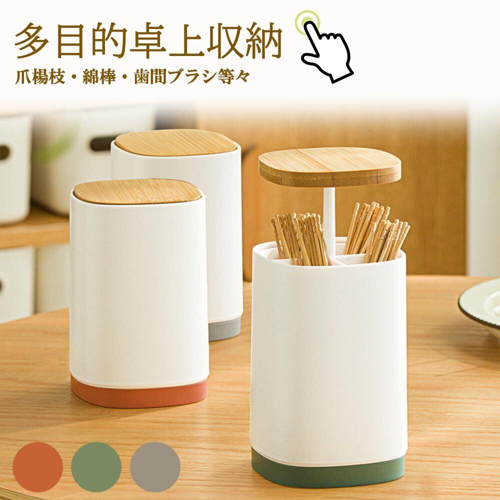 Wellvie つまようじ入れ ワンプッシュ おしゃれ 2個 セット 爪楊枝入れ プッシュ式 爪楊枝 歯間ブラシ ホルダー ケース シンプル 卓上 収納 キッチン収納 日用品 マルチホルダー つまようじホルダー ピンク グリーン グレー (灰色2個) [並行輸入品] | kki