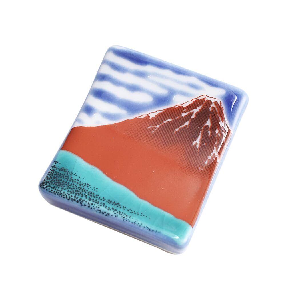 日本製 九谷焼 久谷焼 北陸伝統工芸 色絵 磁気 陶器 陶磁器 キッチン雑貨 日用品 カトラリー 箸置き はしおき お洒落 オシャレ 記念日 お祝い 開店祝い 贈り物 プレゼント 芸術 作品 ポーチ付 赤富士 クリックポスト対応 | kki