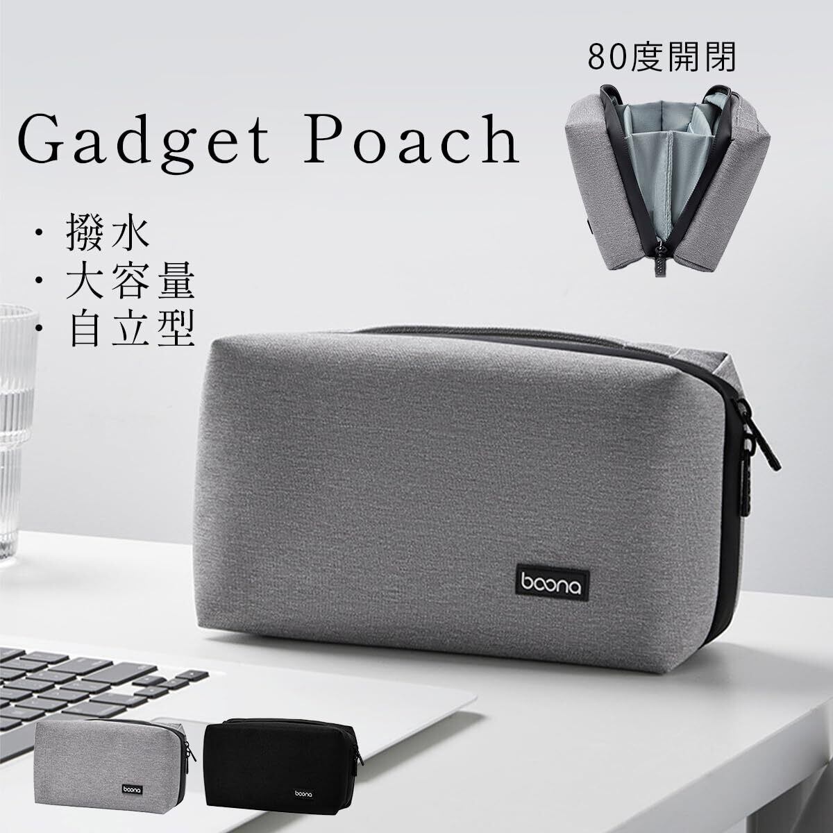 ガジェットポーチ 自立 小型 ジャバラ 大容量 コンパクト 軽量 丈夫 トラベルポーチ 撥水 仕切り ビジネス 持ち運び メンズ