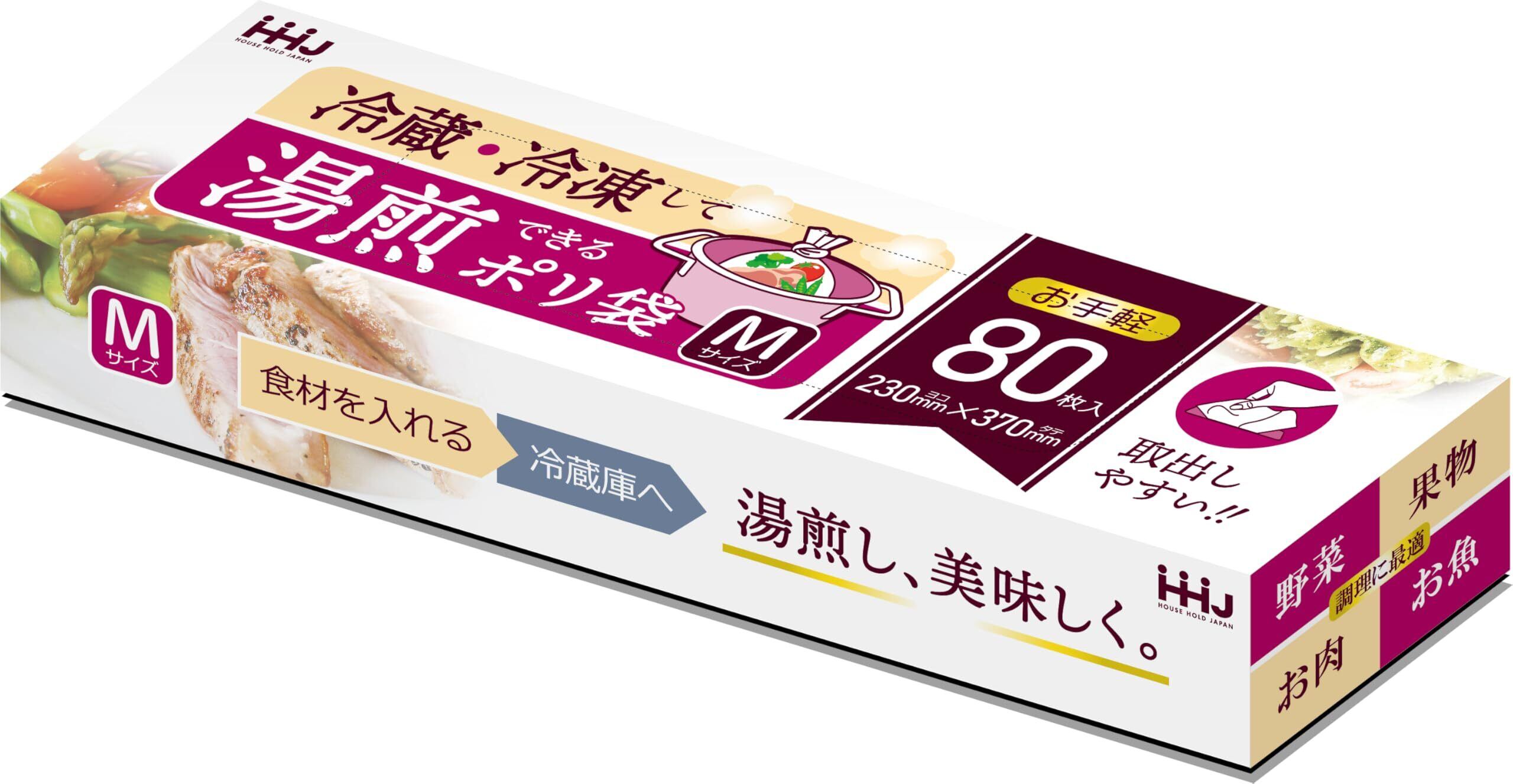 ハウスホールドジャパン ポリ袋 湯煎ポリ袋 BOXタイプ Mサイズ 80枚入 3個セット 半透明 KY02
