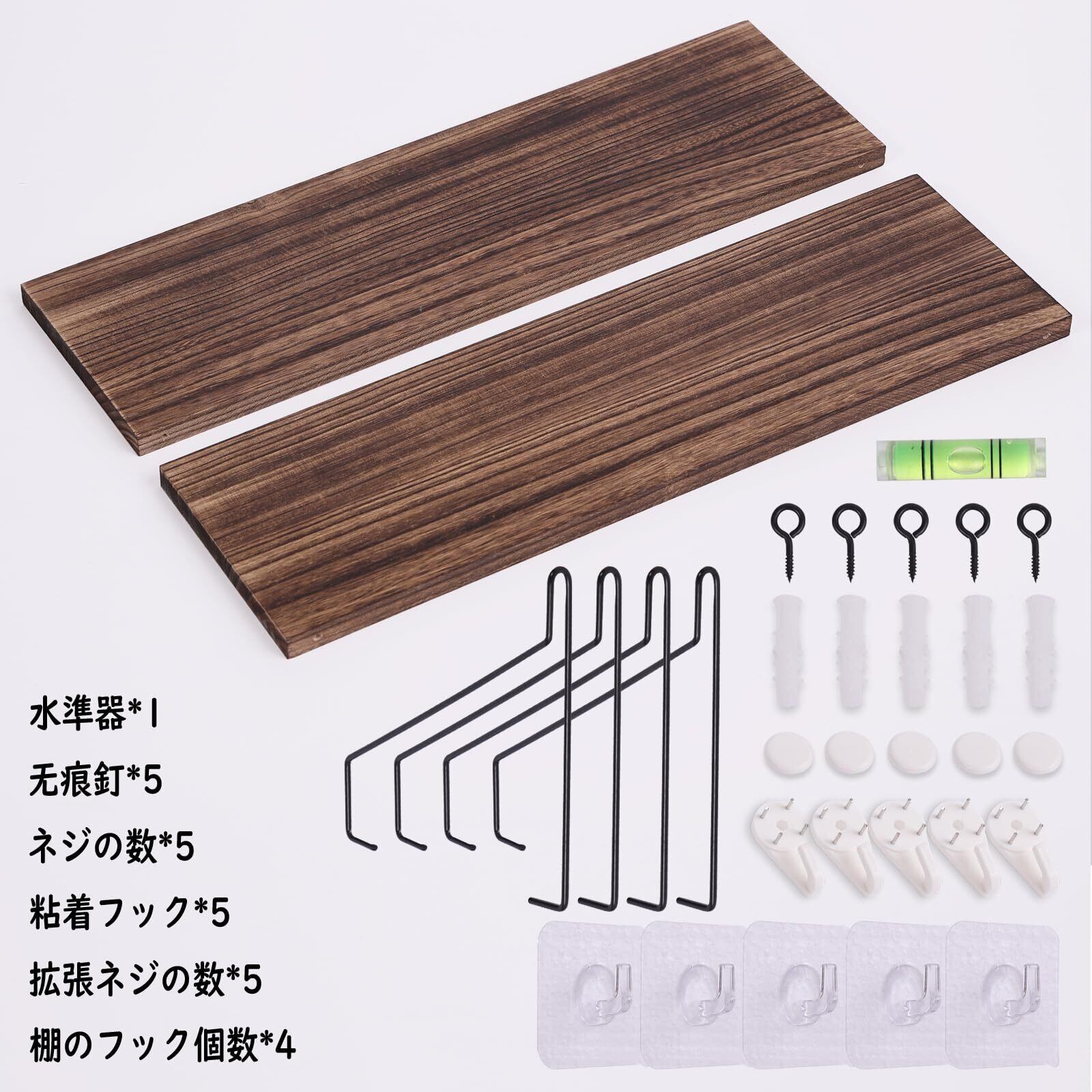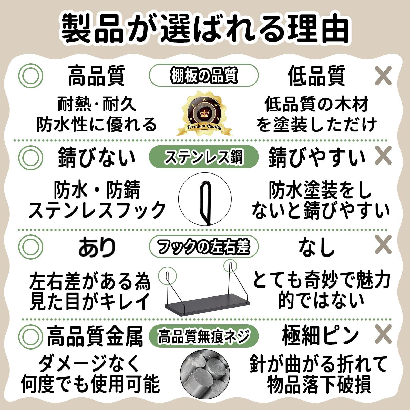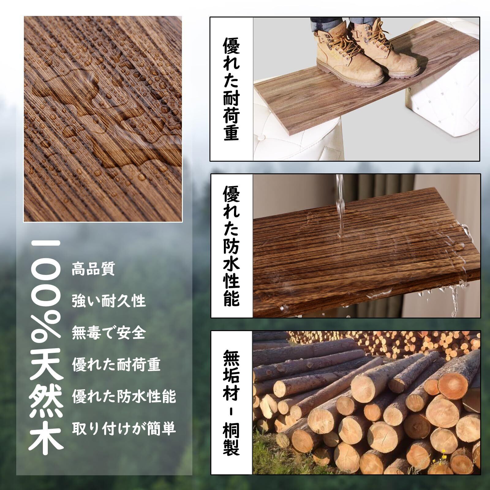 ウォールシェルフ 壁を傷つけない 42+42cm2点セット 天然桐木壁掛け棚 賃貸 壁 棚 穴あけない ウォールラック 壁に付けられる家具 飾り棚木製 簡単取り付け 洗面所/キッチン/トイレ/玄関 壁棚収納 (ダークブラウン) | kki