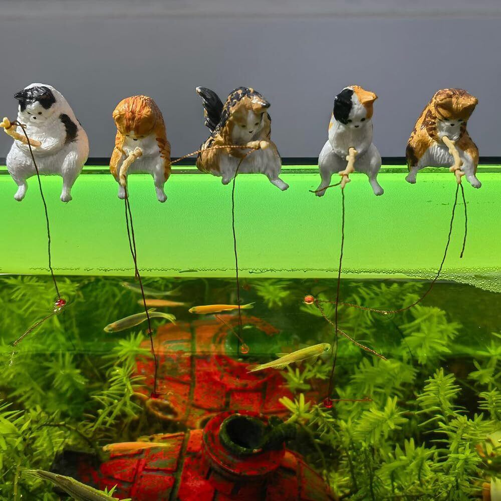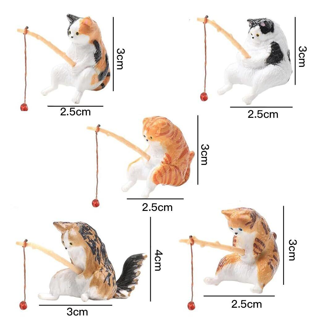 釣り猫 5個セット 猫フィギュア 子猫釣り 置物 樹脂 リアル ミニ 猫釣り 癒し 和風 懸垂装飾品 雰囲気作り 水族館 魚の水槽 庭 雑貨 オフィス 装飾 (B)