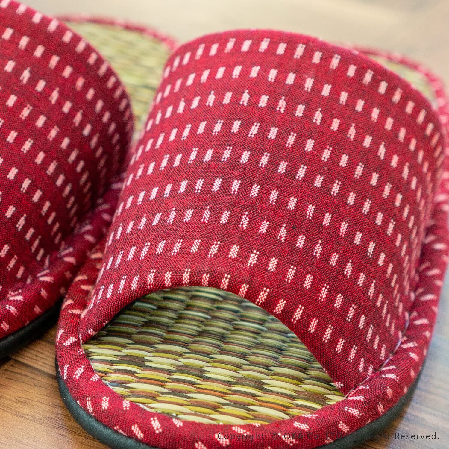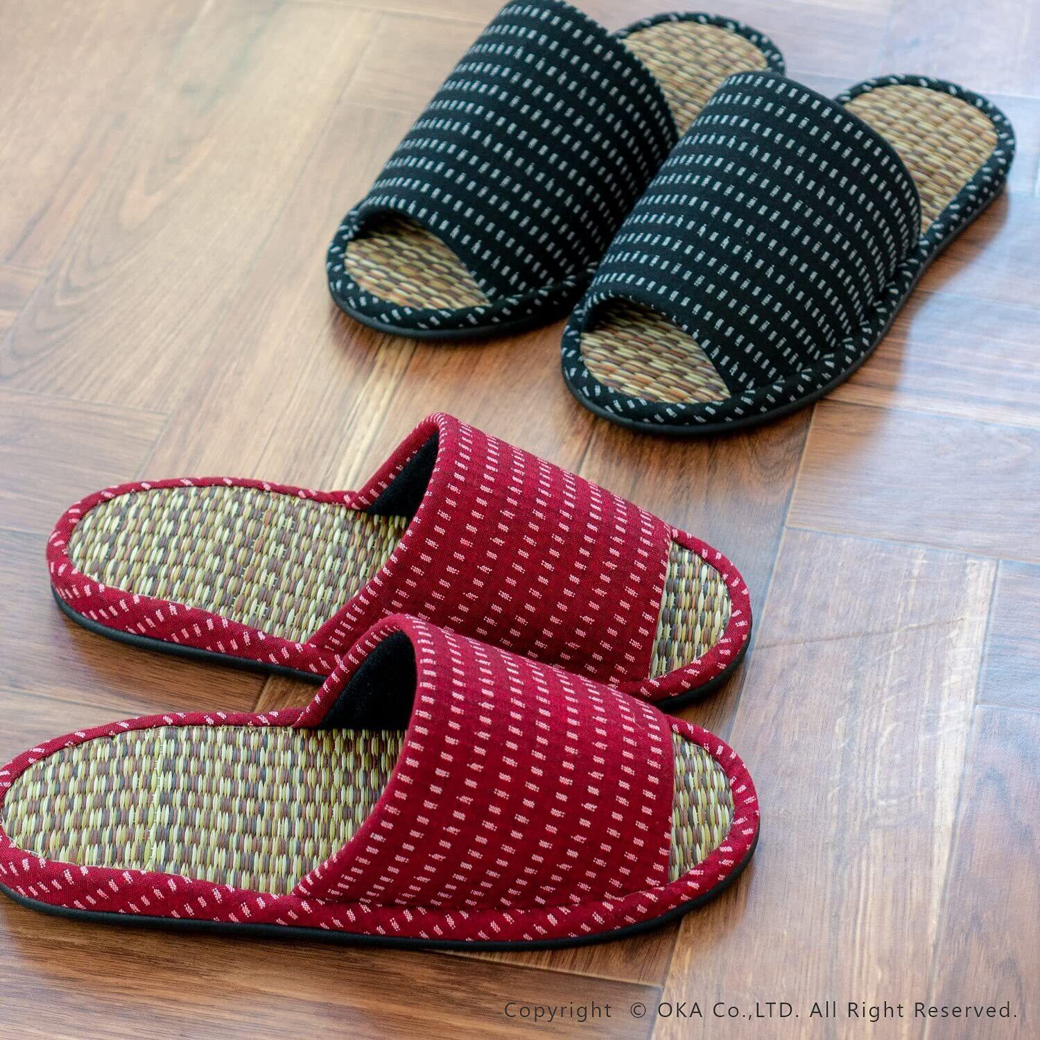 オカ(OKA) 日本製久留米織畳スリッパ Mサイズ レッド (ルームシューズ)