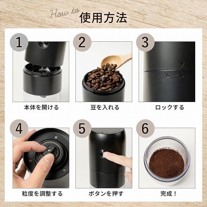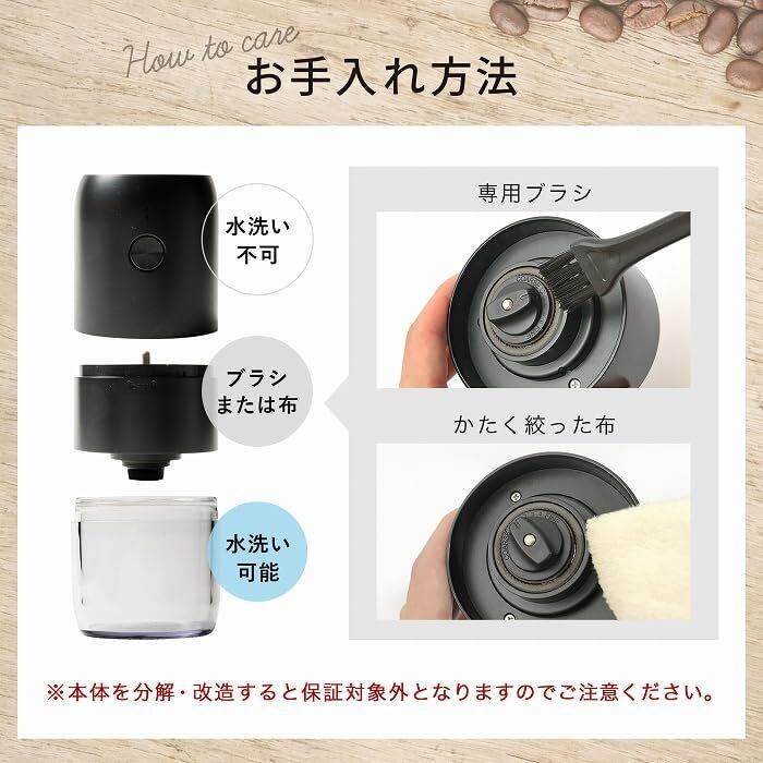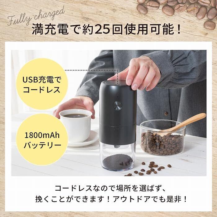 コーヒーミル 電動 臼式 セラミック製の刃 自動停止 無段階調整設定 USB充電式 バッテリー内蔵 1800mAh ミルミキサー 掃除ブラシ付 お手入れ簡単 (ホワイト)