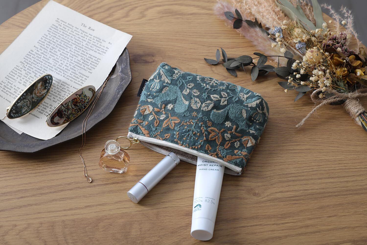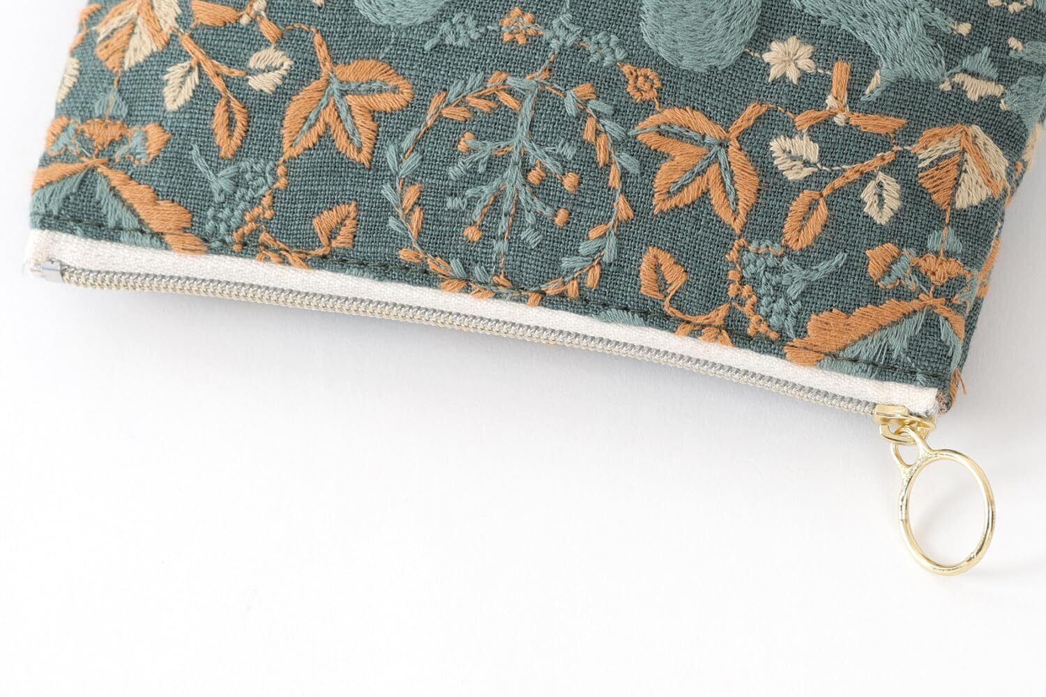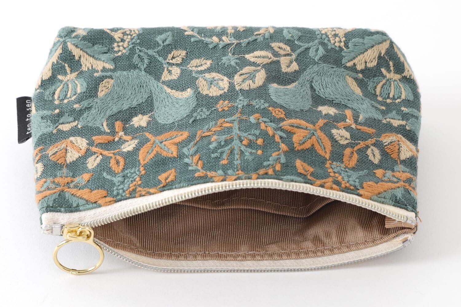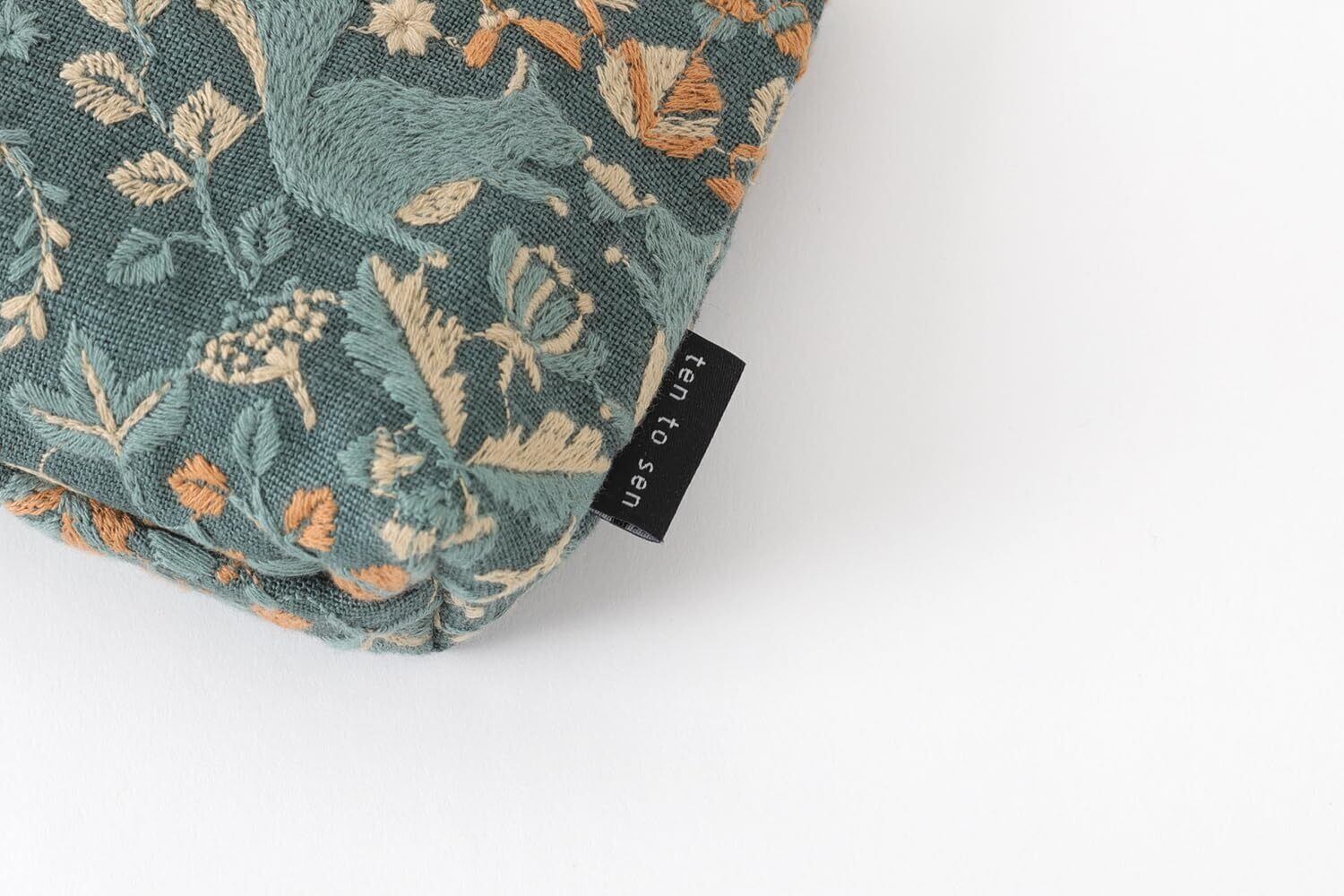 DDintex ディーディーインテックス ten to sen BASICポーチ リスノモリ グリーン 15×10.5×4.5cm [点と線刺繍生地使用]