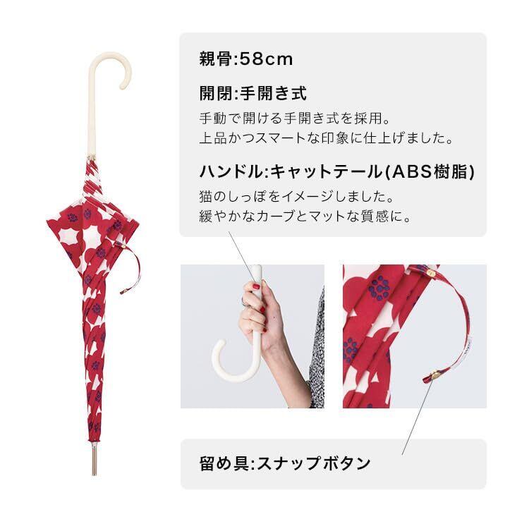 Wpc. 雨傘 カメリア レッド 長傘 58cm レディース 晴雨兼用 大きい 花柄 北欧 レトロ グラスファイバー 丈夫 通勤 通学 おしゃれ 可愛い 女性 4036-07-001