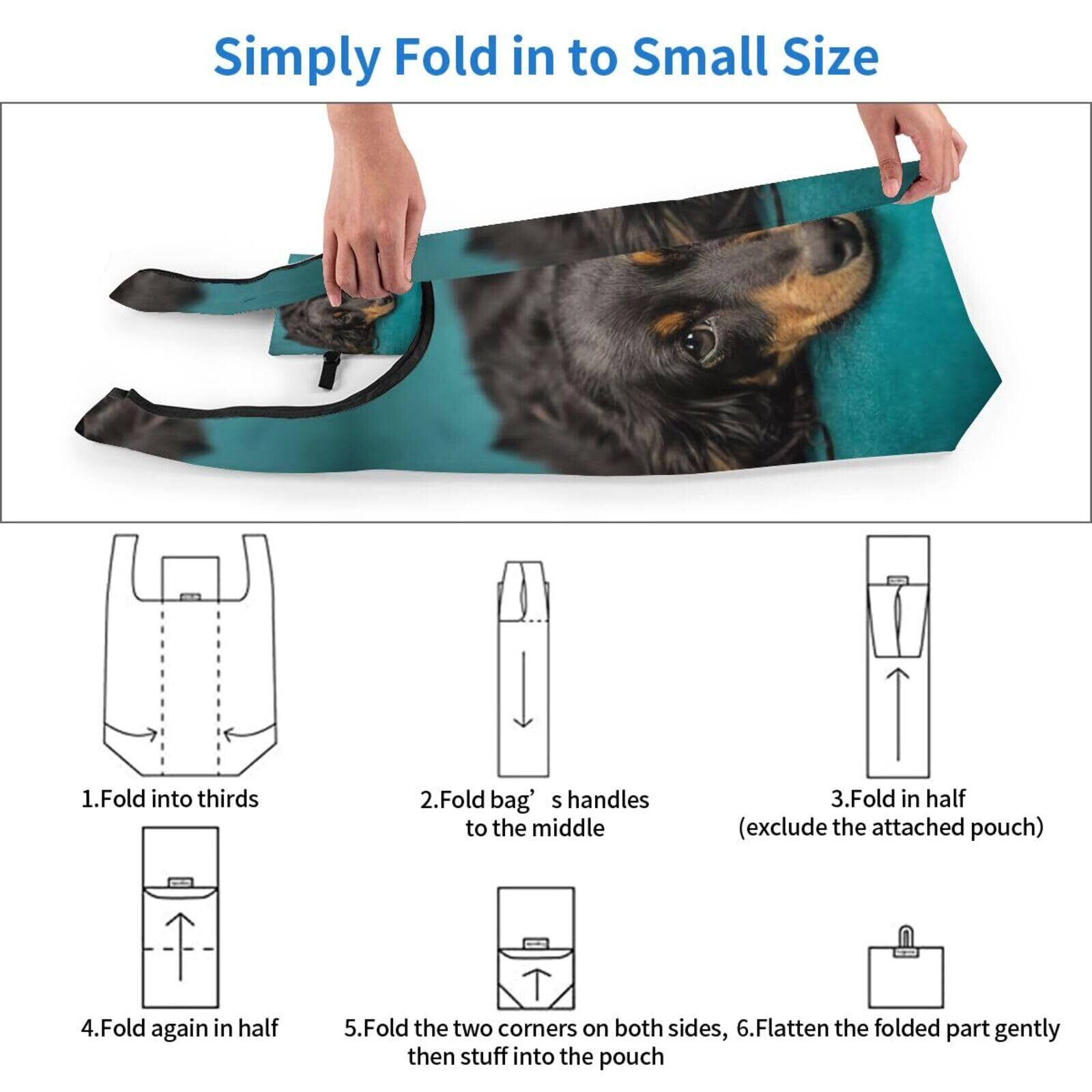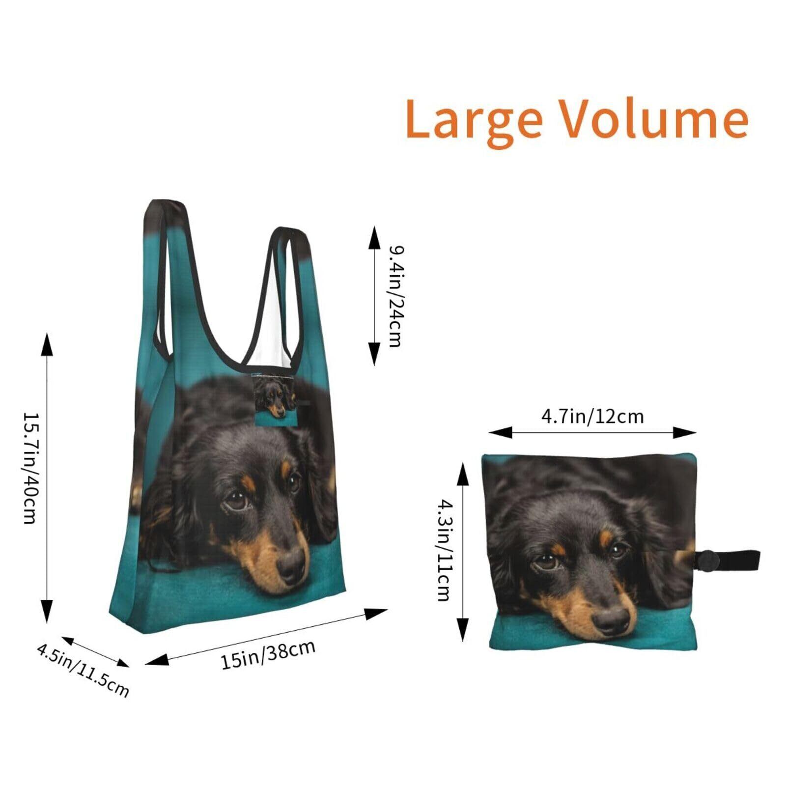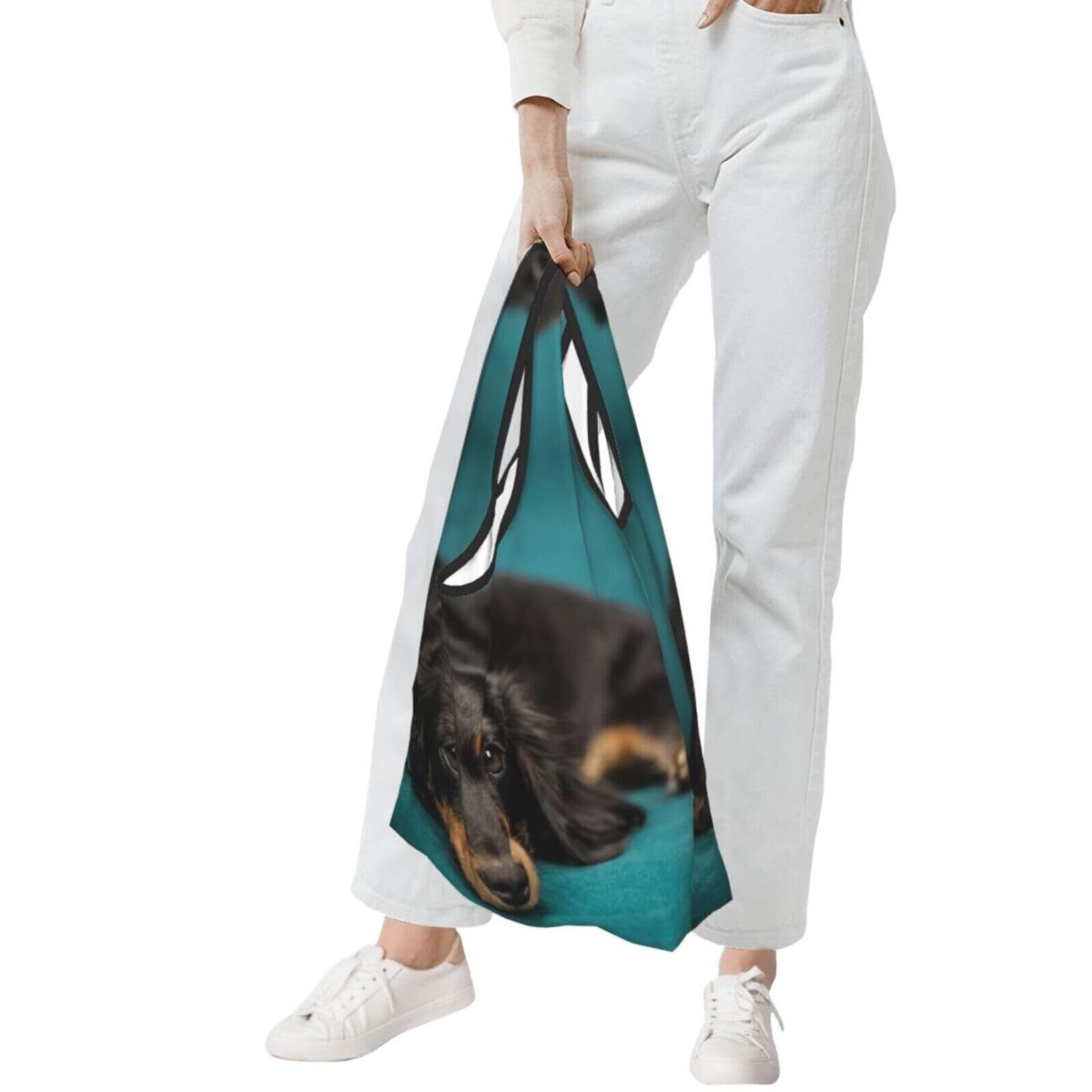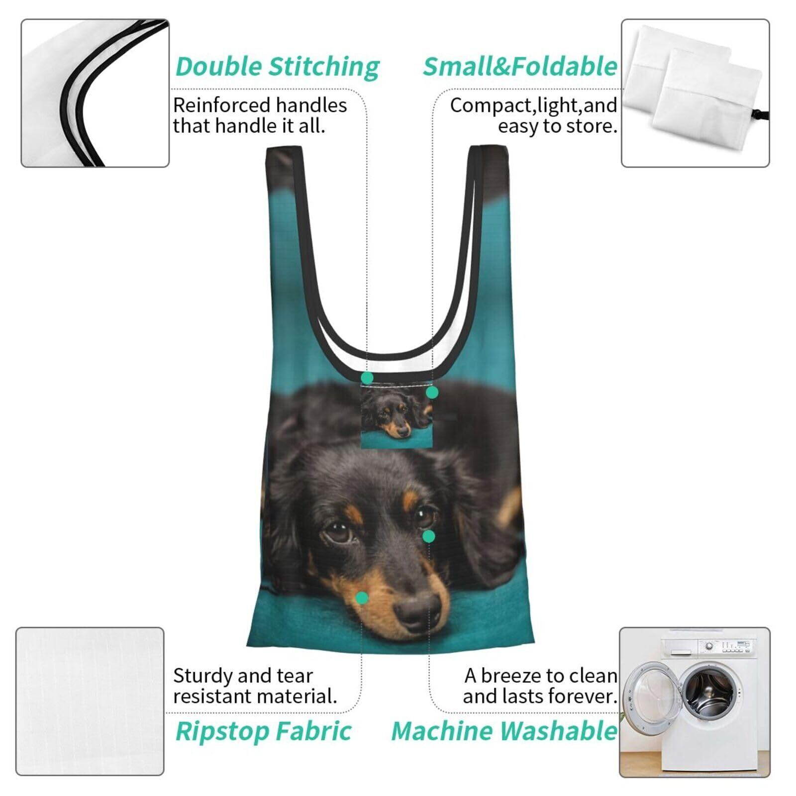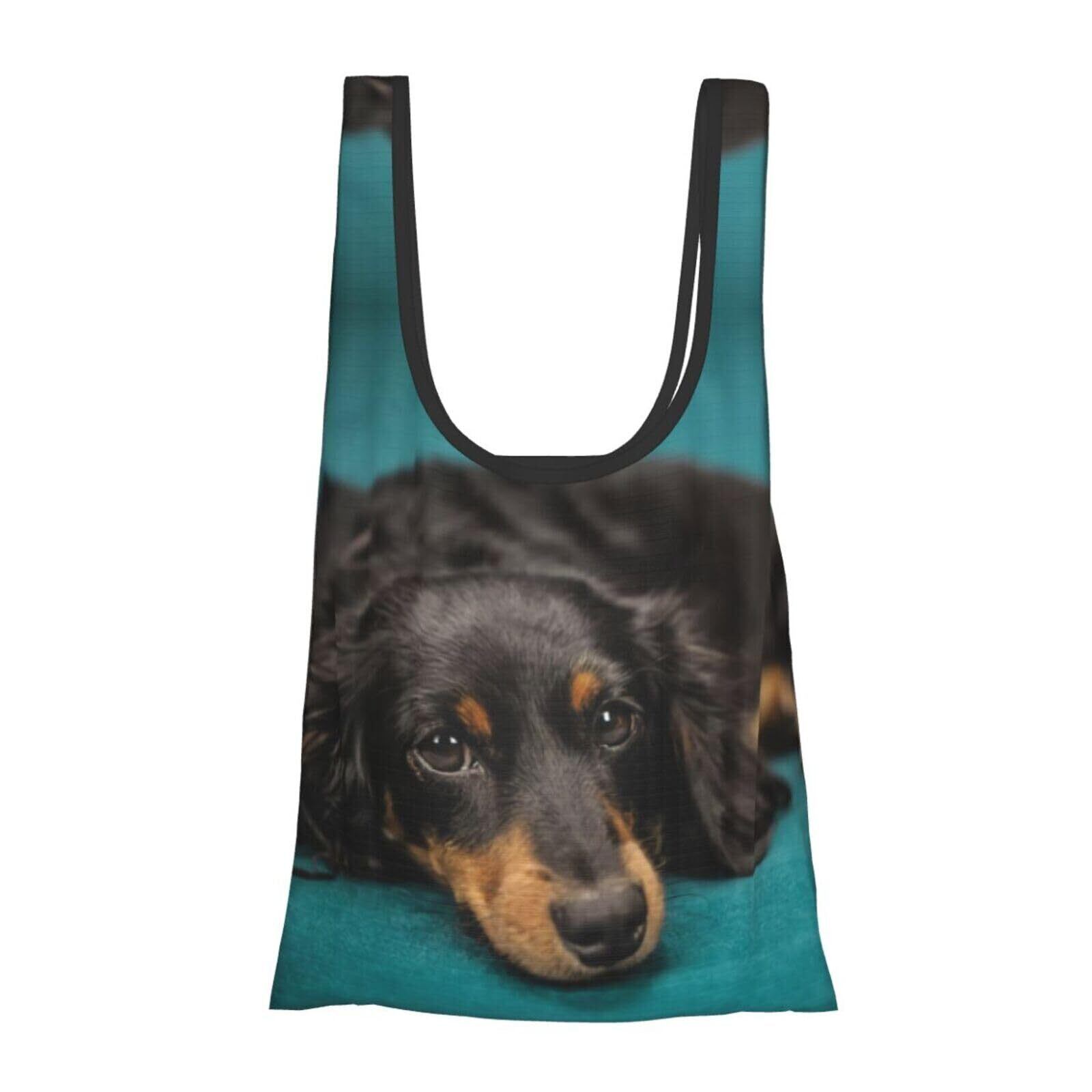 [Chioee] 折りたたみ エコバッグ シャム猫 シャムネコ 写真 かわいい ショッピングバッグ 防水 大容量 コンパクト トートバッグ 買い物袋 ポケット付き 軽量 コンビニ アニメ グッズ プレゼント (ダックスフンド, ワンサイズ) | kki