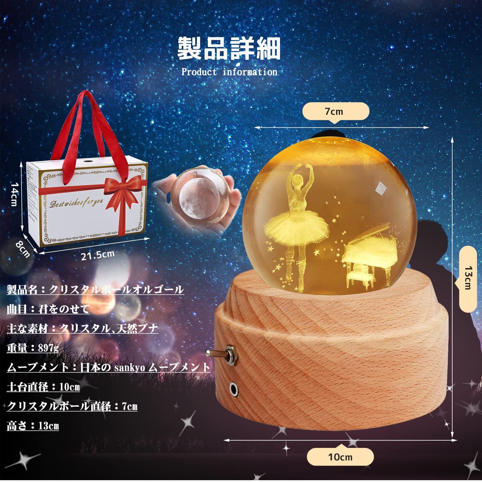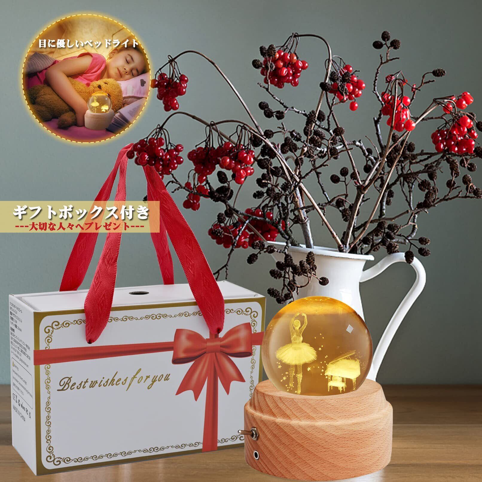 【正規品】オルゴール プレゼント【ギフトボックス付き】人気 女性プレゼント クリスマス・誕生日プレゼント クリスタル ボール LEDライト 間接照明 可愛い USB充電式 投影機能 木製土台 ベッドサイドランプ ロマンチックな雰囲気 癒しグッズ インテリア雑貨 誕生日/クリスマス/結婚式/記念日/卒業/母の日などのお祝い(バレリーナ- 曲目:君をのせて) | kki