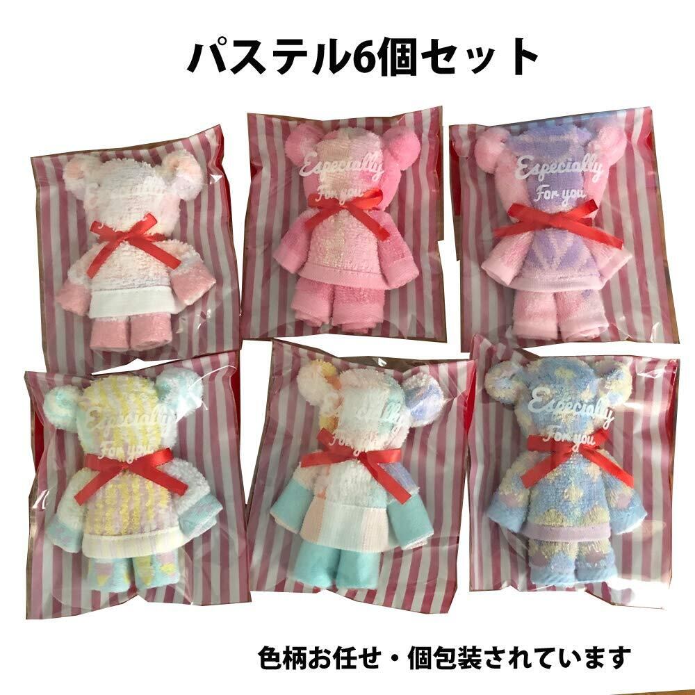 minimumkobe(ミニマム神戸)タオル ハンドタオル ギフト プチギフト 柄おまかせ くま 6個 セット 可愛い お返し (6個セット, パステルカラー)