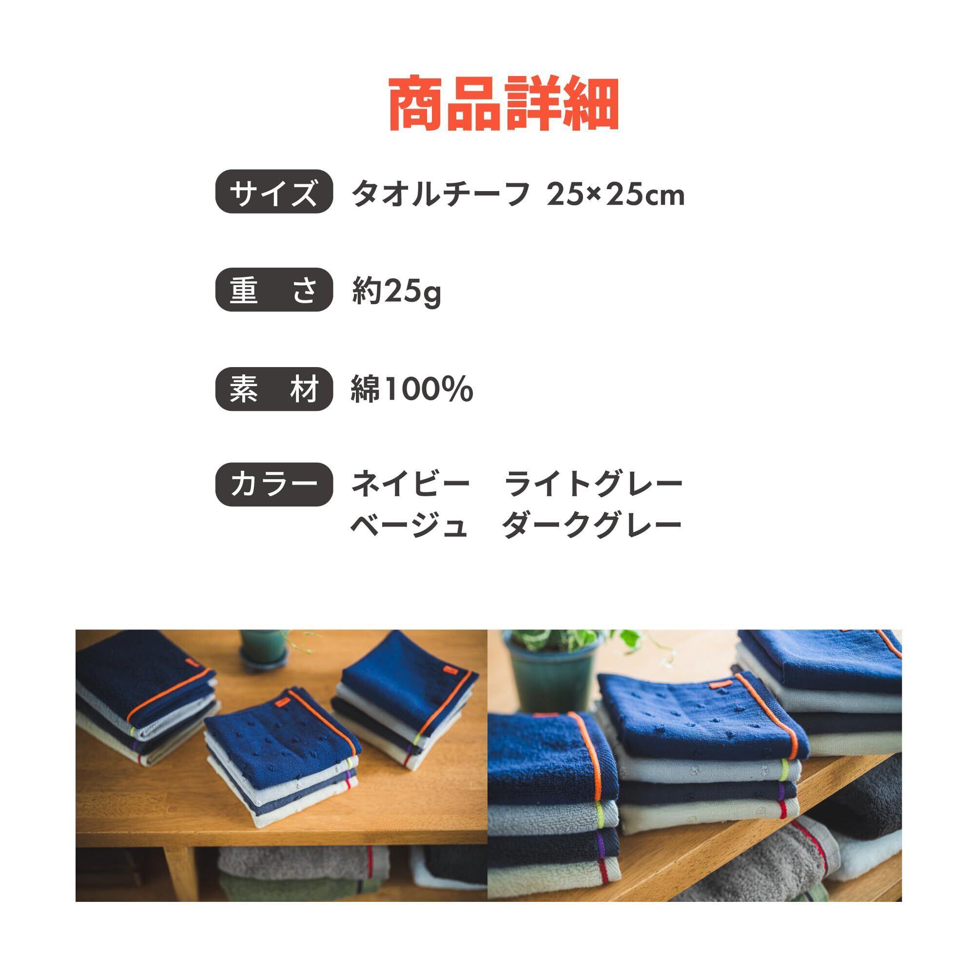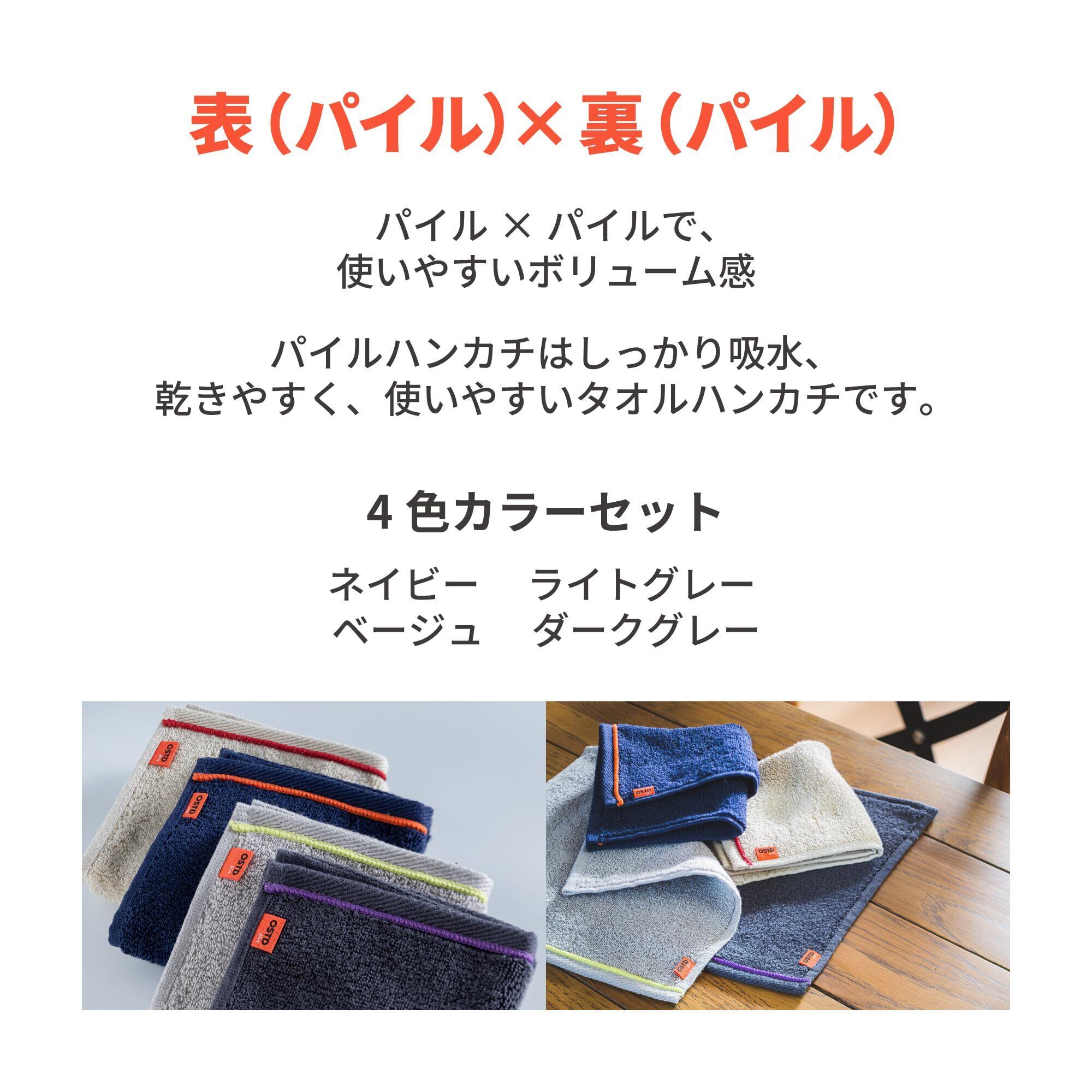 OSTDplus(オーエスティーディープラス) タオルハンカチ 4色セット 両面パイル メンズ 綿100% パイル×パイル (ネイビー ライトグレー ベージュ ダークグレー) 約25×25cm | kki