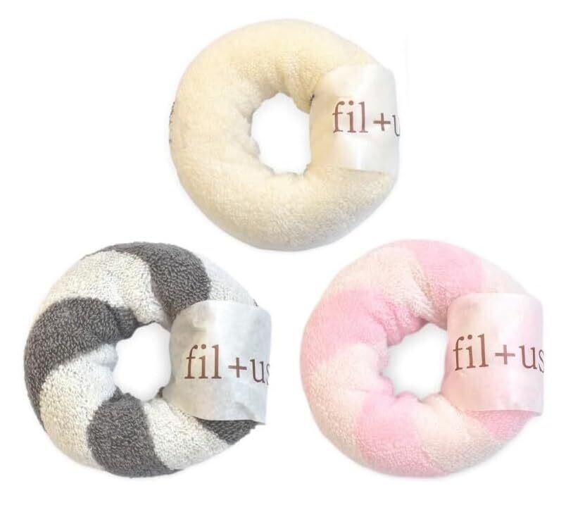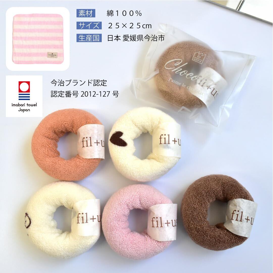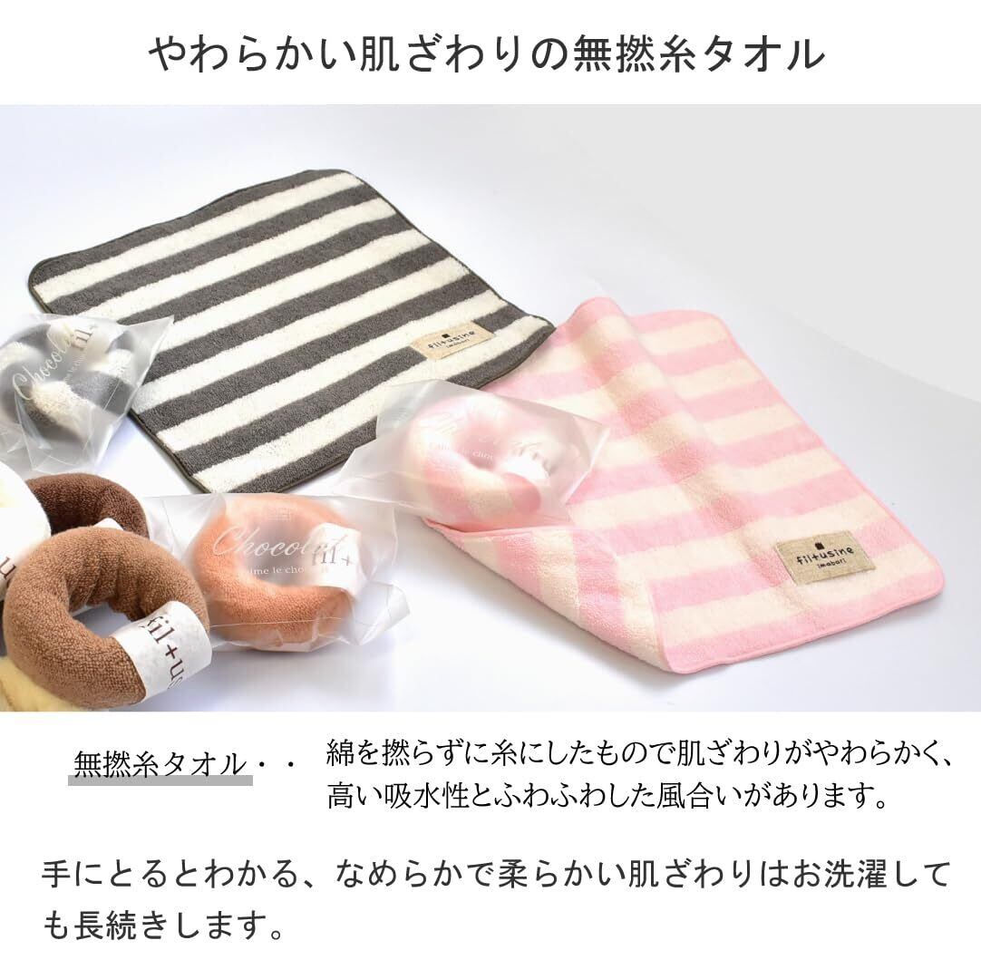 今治タオル ドーナツハンカチ 3個セット 個包装 プレゼント 綿100% 無撚糸 ふわふわ 柔らかい 吸水 速乾 日本製 (C グレー(ボーダー)&ホワイト&ピンク(ボーダー))