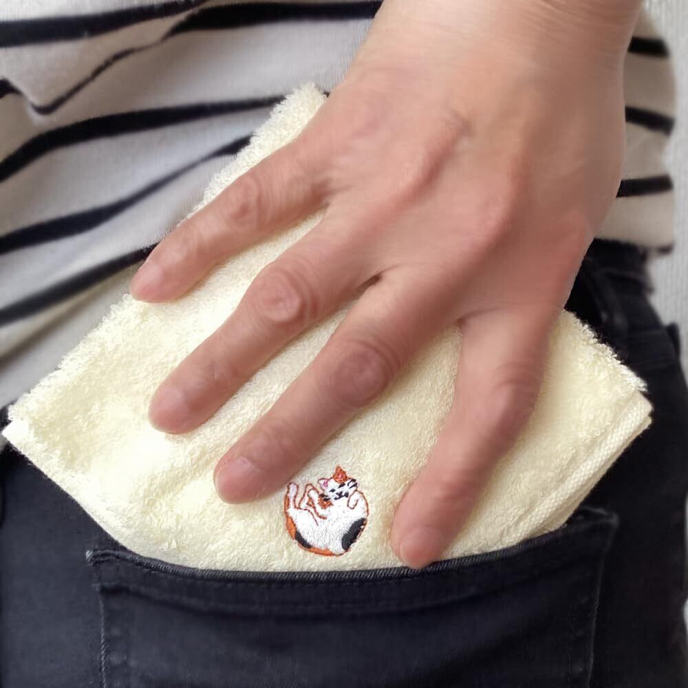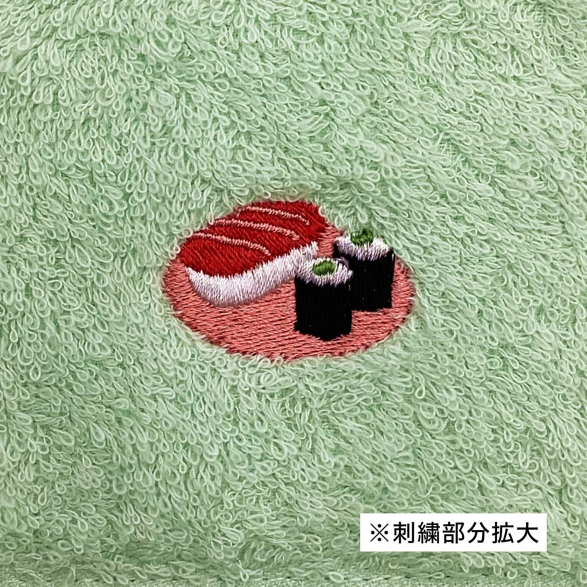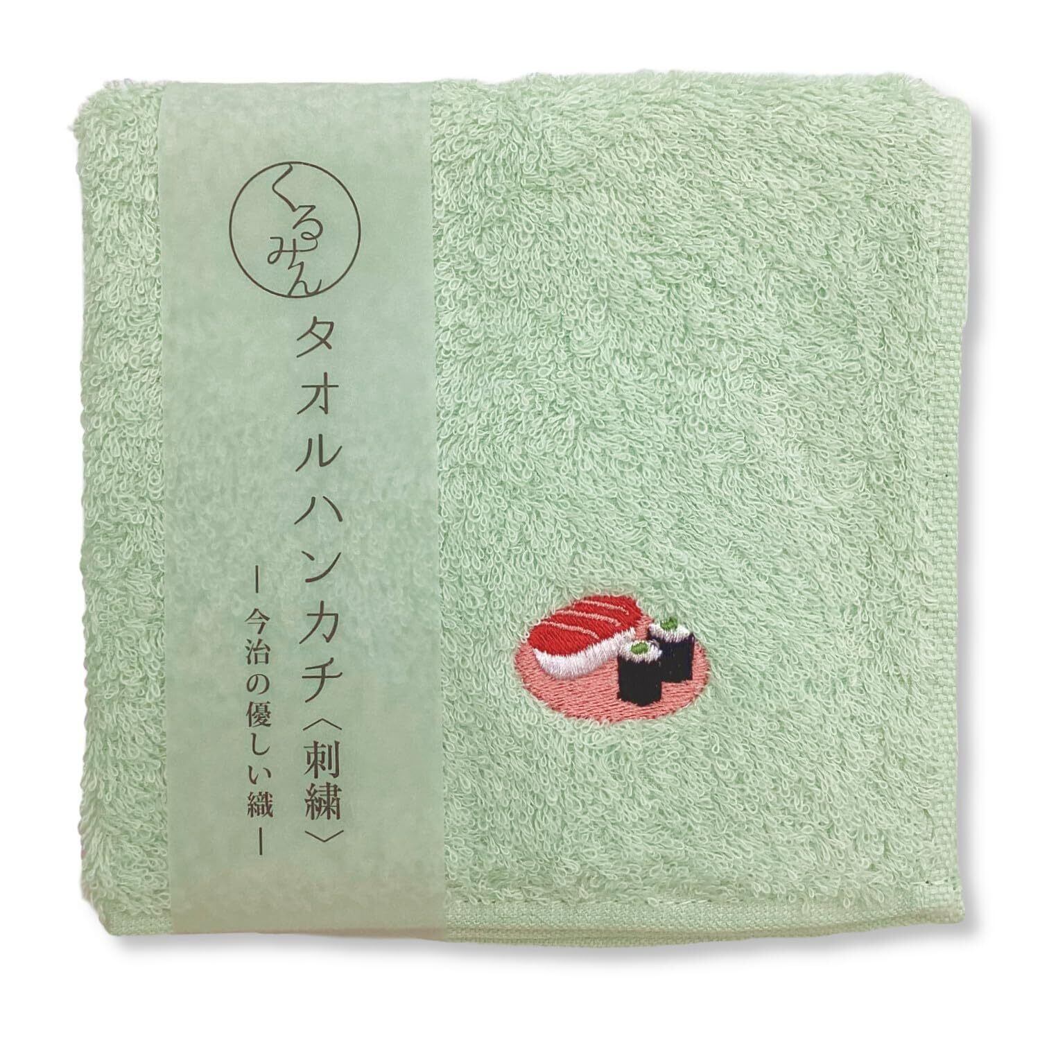 京佑 日本製 今治 刺繍 ハンカチ 約25cm×25cm ハンド タオル ウォッシュ ミニ 綿 くるみん 寿司 薄緑