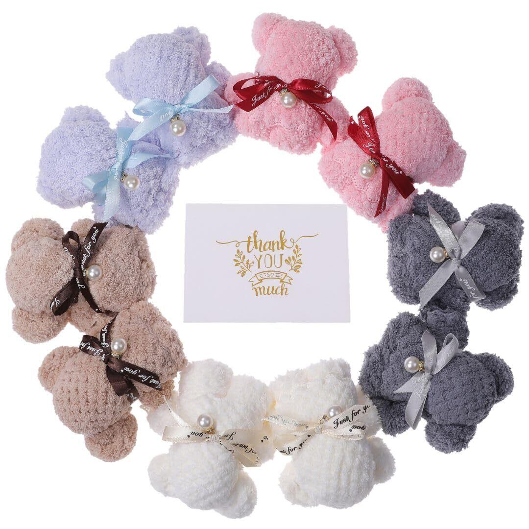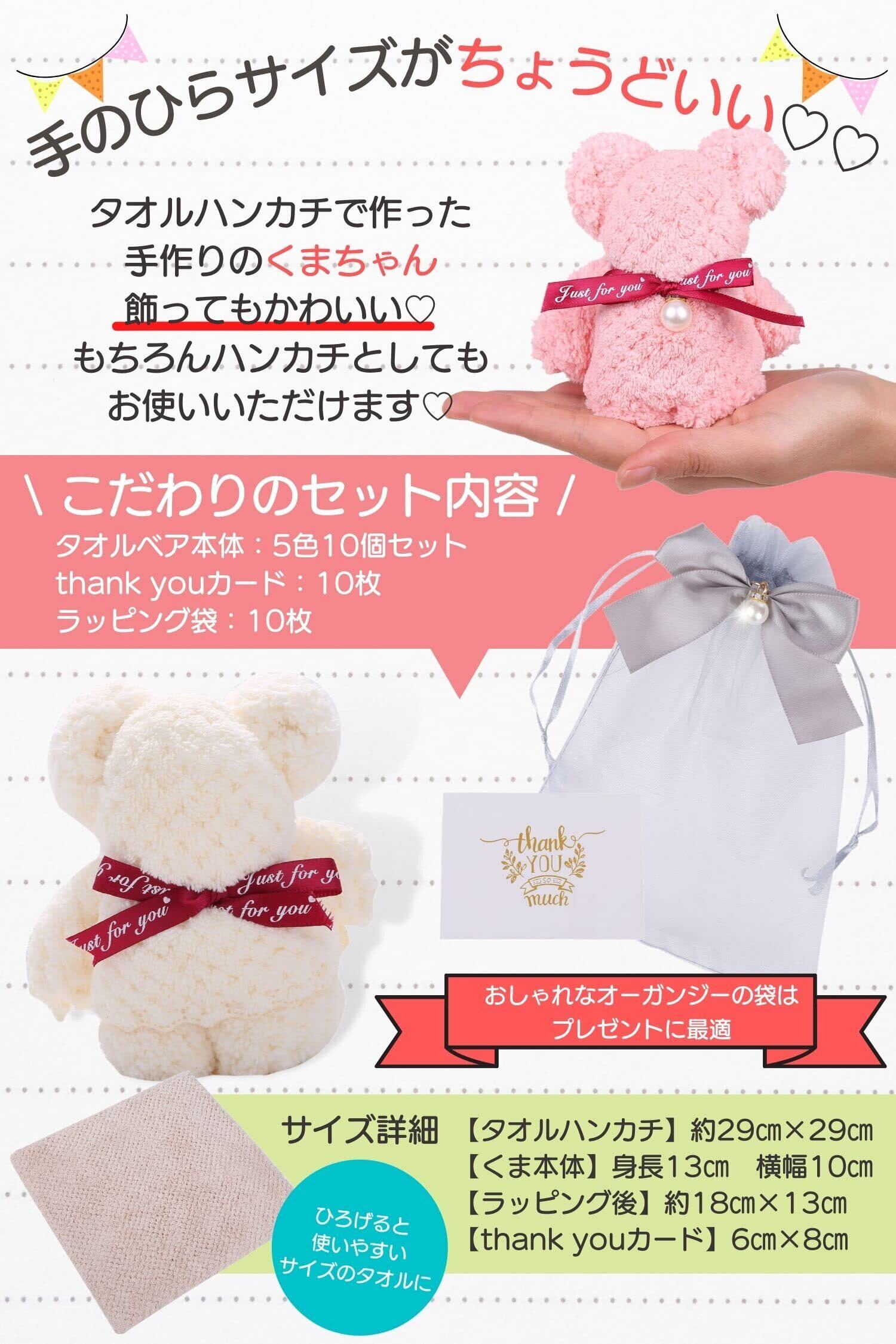 プチギフト 退職祝い 卒業祝い 【ほんの気持ちにぴったり】 タオルベア ギフト お礼 ベア クマ タオル タオルハンカチ ハンカチ レディース お返し 粗品 退院 サンキューカード オーガンジーラッピングバック付き 5個 8個 10個 (パールくまちゃん10個) mugenbo | kki