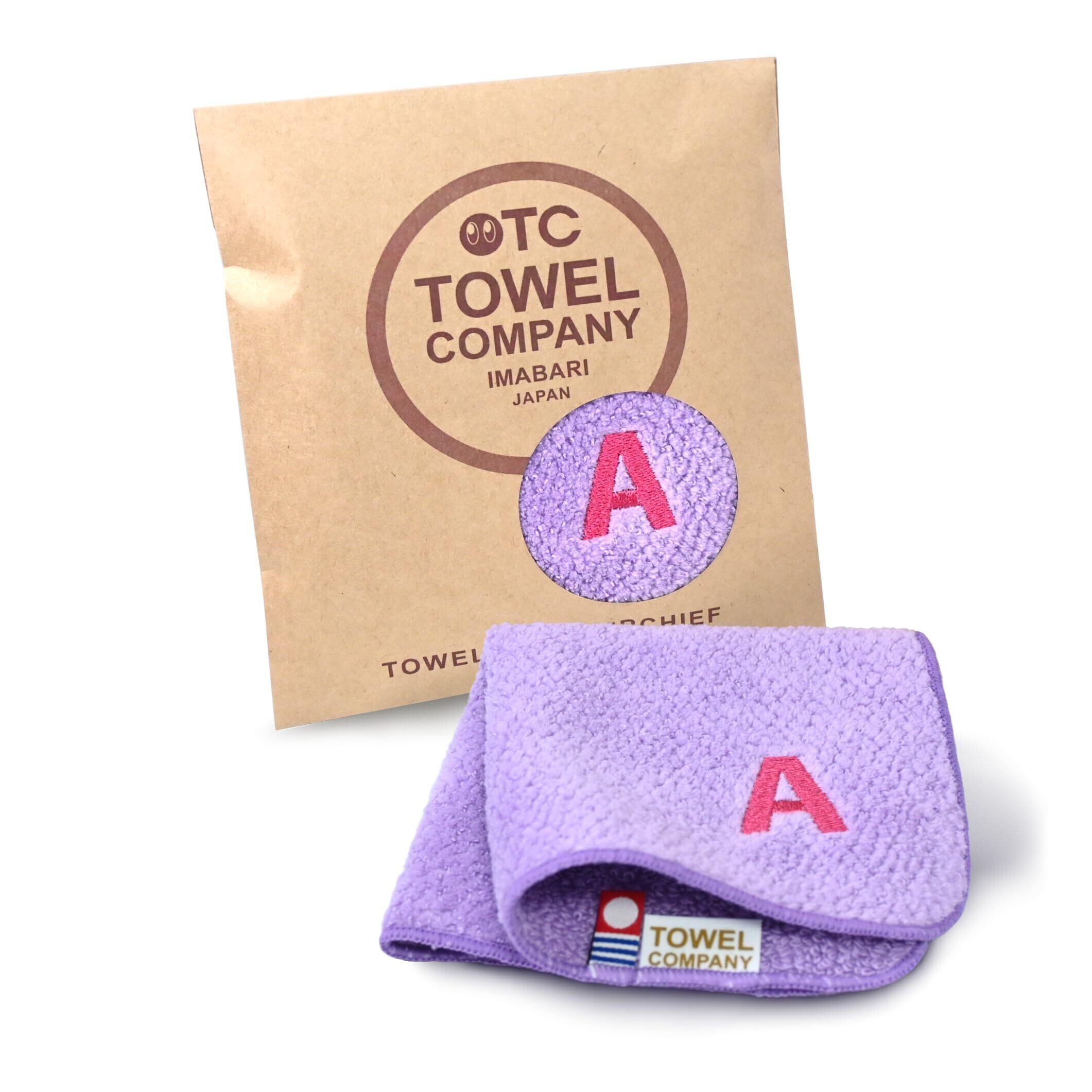 TOWEL COMPANY 今治タオル ハンカチ 22×22cm ギフト 刺繍 イニシャル (アルファベット-A-(バイオレット))