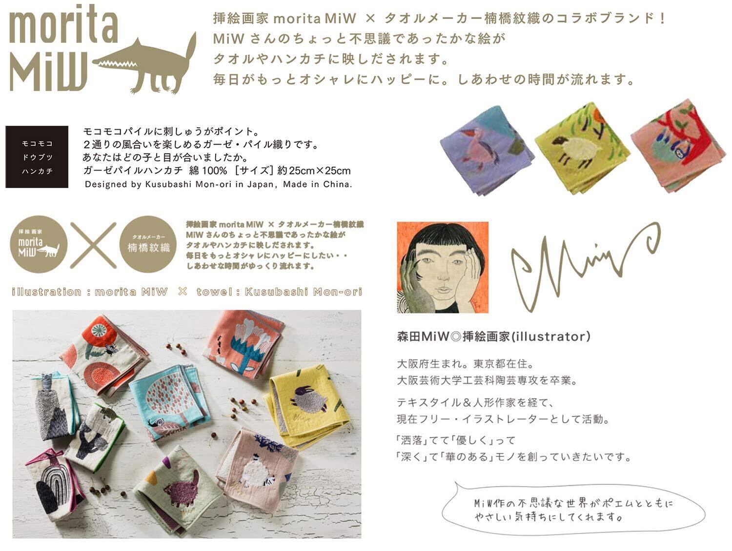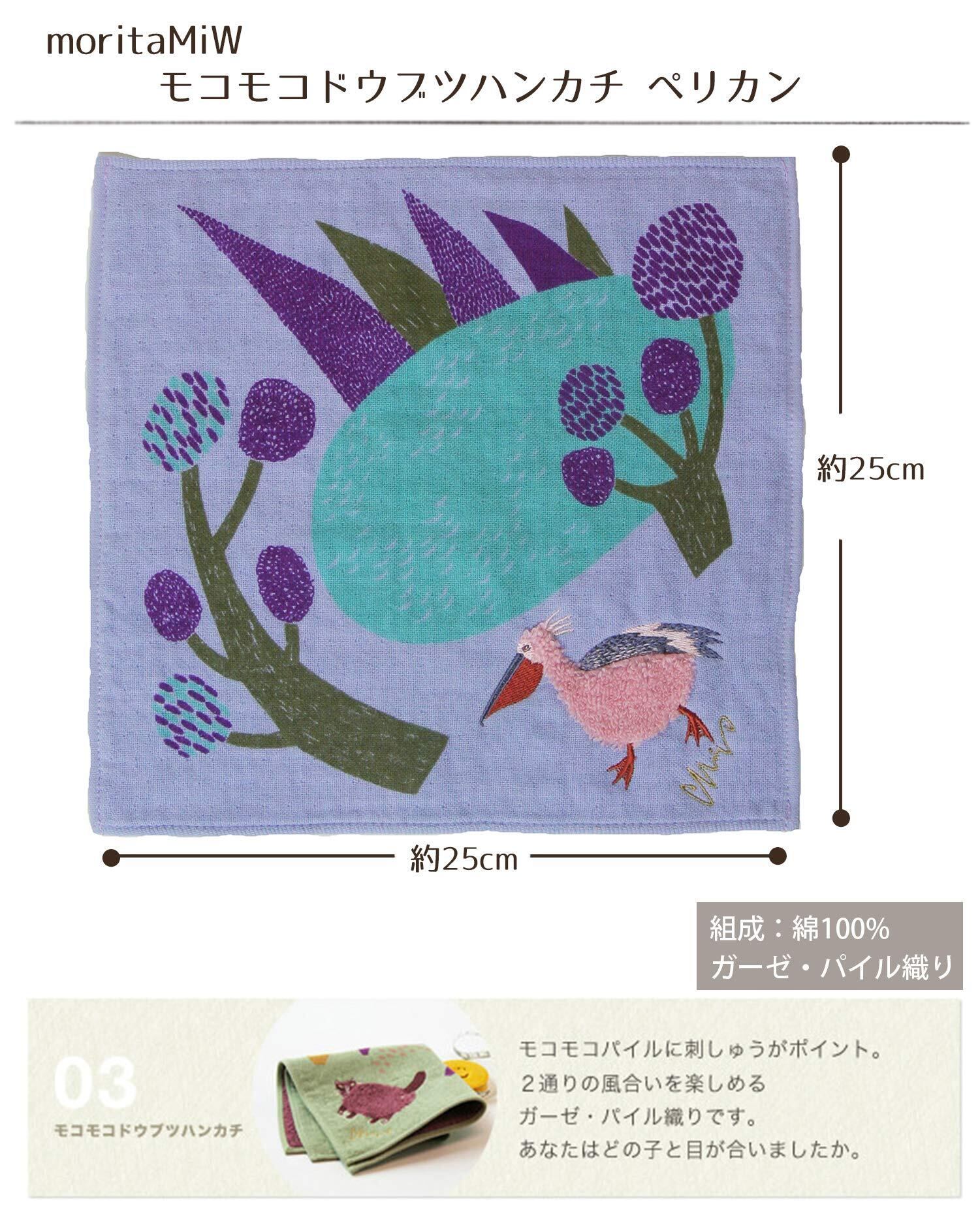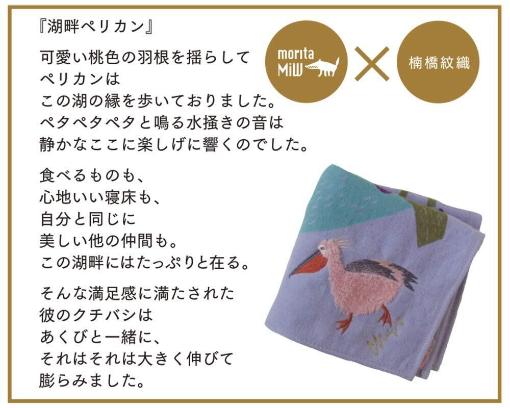 【moritaMiW】 楠橋紋織(Kusubashi Mon Ori) ガーゼパイルハンカチ 湖畔ペリカン パープル 【A-67067-86-PAP】