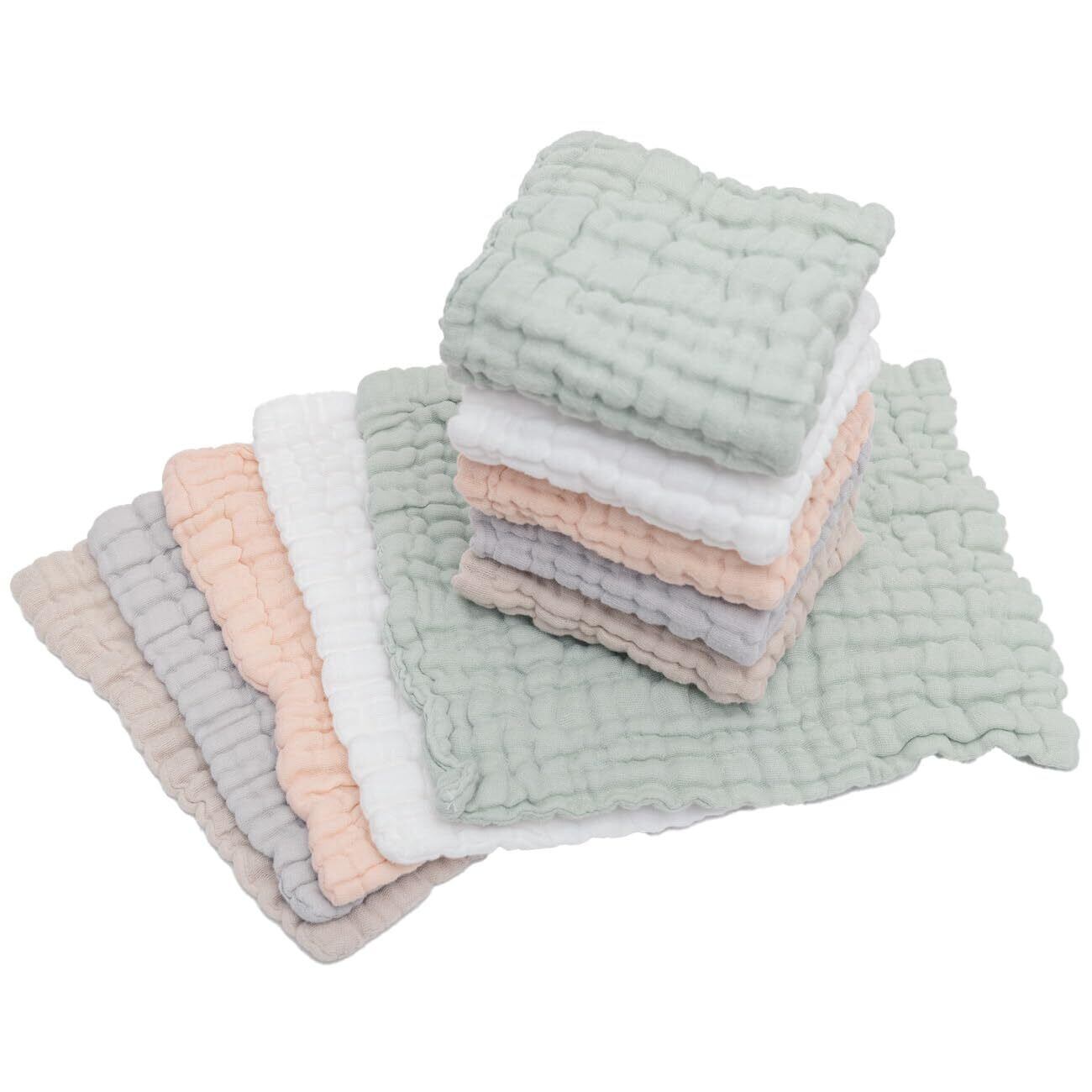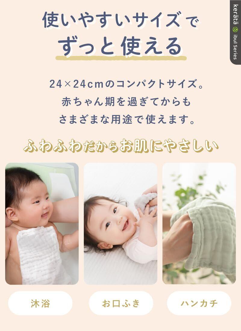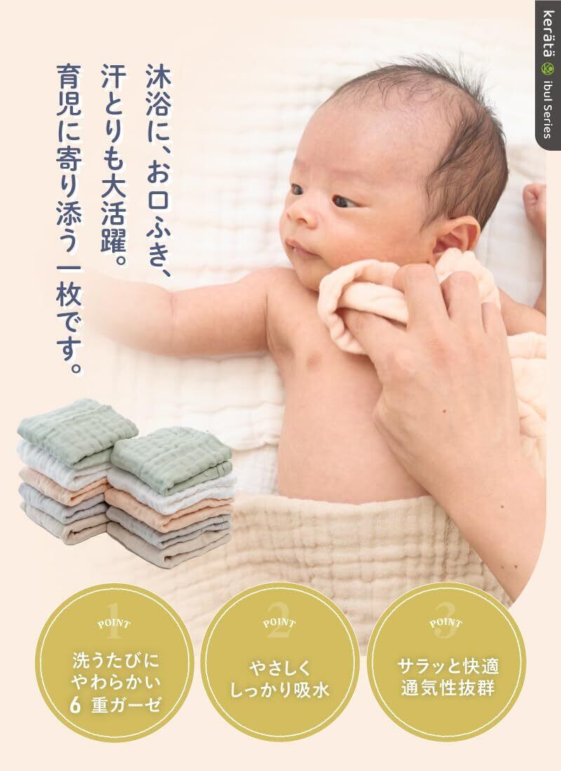 (ケラッタ) イブル ガーゼハンカチ ベビー もこもこ 6重ガーゼ くすみカラー 10枚セット 沐浴ガーゼ 沐浴布 赤ちゃん (ピンク グレー グリーン ベージュ ホワイト)