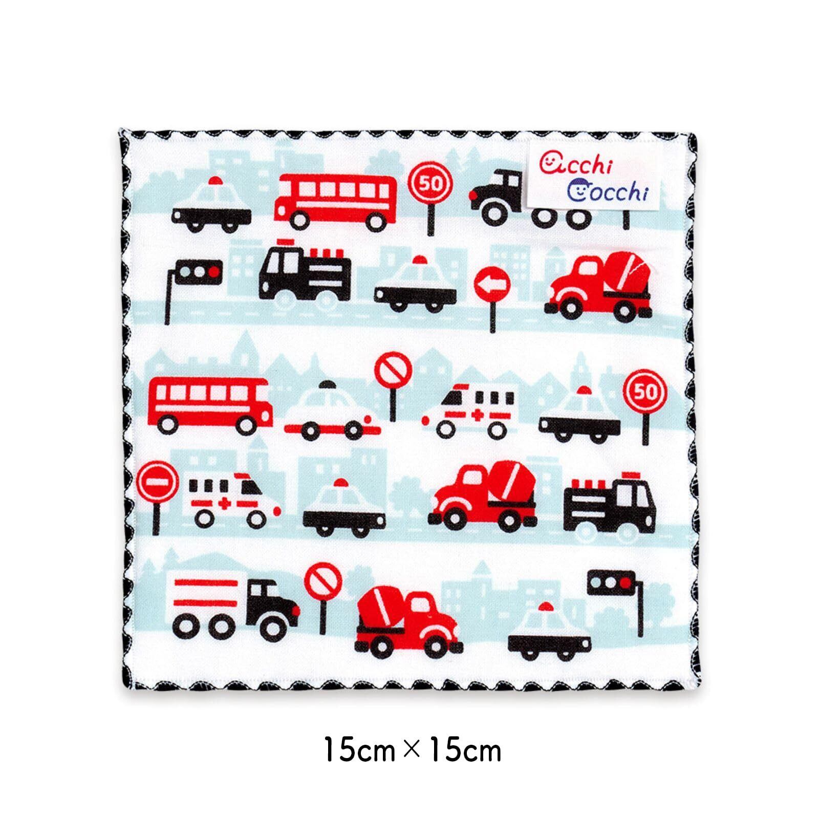 ミヤモトタオル 宮本 ハンカチ 子供ハンカチ acchi cocchi くるま 日本製 ブルー 約15×15cm 02930