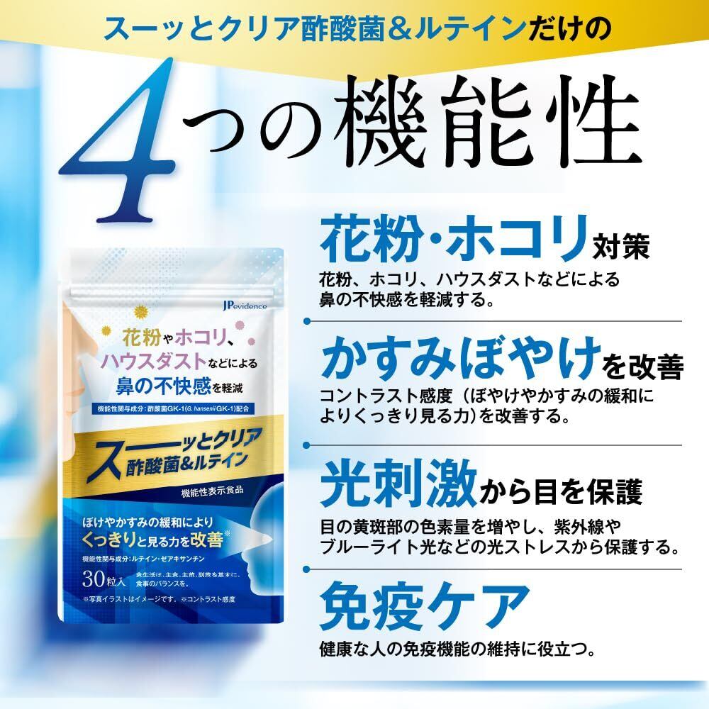 スーッとクリア酢酸菌&ルテイン 花粉 ホコリ ハウスダストなどによる鼻の不快感を軽減。ぼけやかすみの緩和によりくっきりと見る力を改善 ルテイン ゼアキサンチン 機能性表示食品
