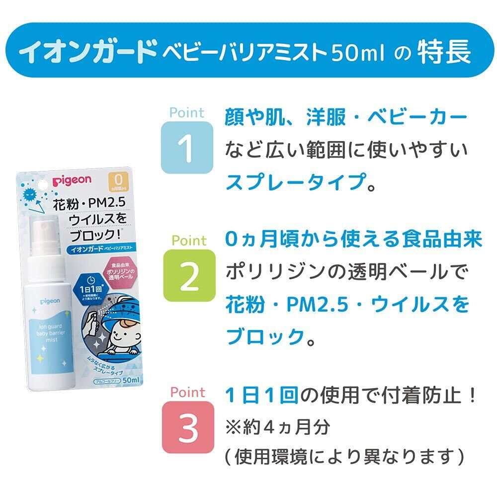 PIGEON ピジョン 花粉・PM2.5 ウイルスブロック! イオンガード ベビーバリアミスト 50ml アルコールフリー 0か月~