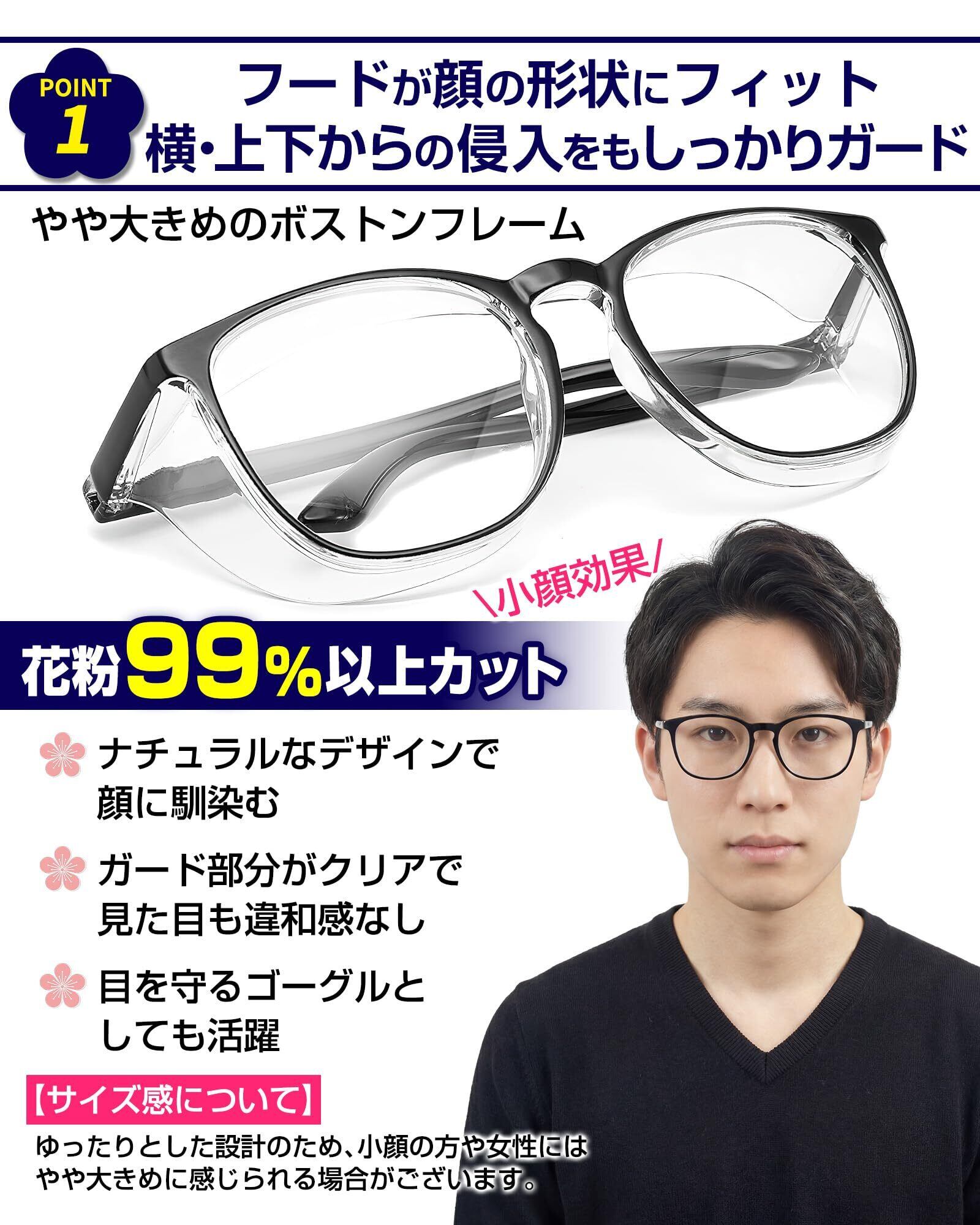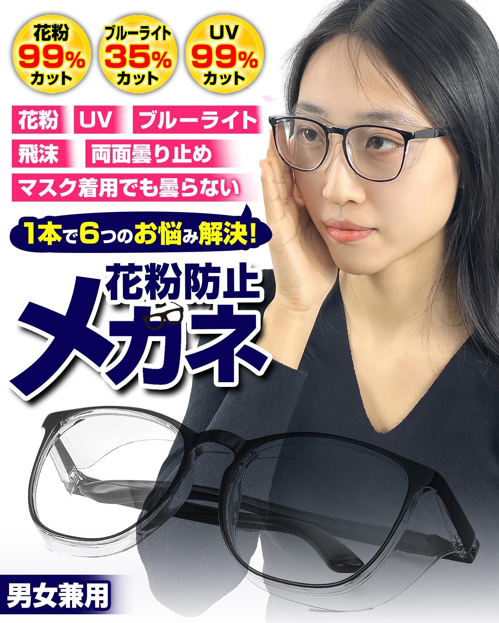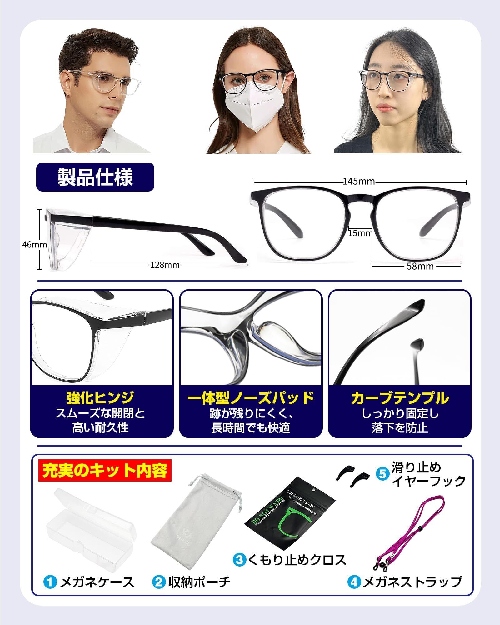 [GOKEI] 花粉防止メガネ 花粉症 メガネ 曇らない 花粉メガネ 【両面曇り止め ブルーライトカット】 花粉症メガネ 飛沫防止メガネ 花粉 症 レディース メンズ 花粉症用 花粉対策 メガネ 花粉用 かふんしょうのメガネ 花粉症予防メガネ ブラック | kki