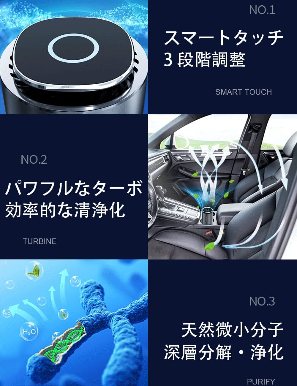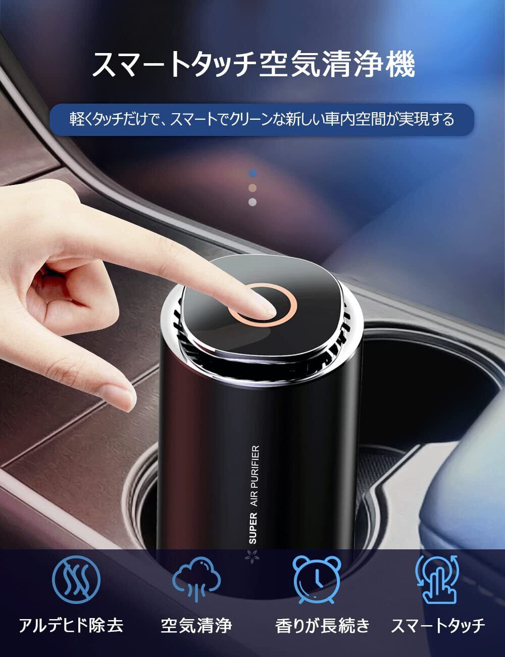 Cadigan 空気清浄機 車 小型 車用空気清浄機 車載 芳香剤 活性炭入り 消臭剤 ディフューザー 3段階風量設定 LEDライト搭載 軽量 静音 消臭 タバコ/ほこり/PM2.5/ペット/部屋用/玄関/キッチン/トイレ | kki